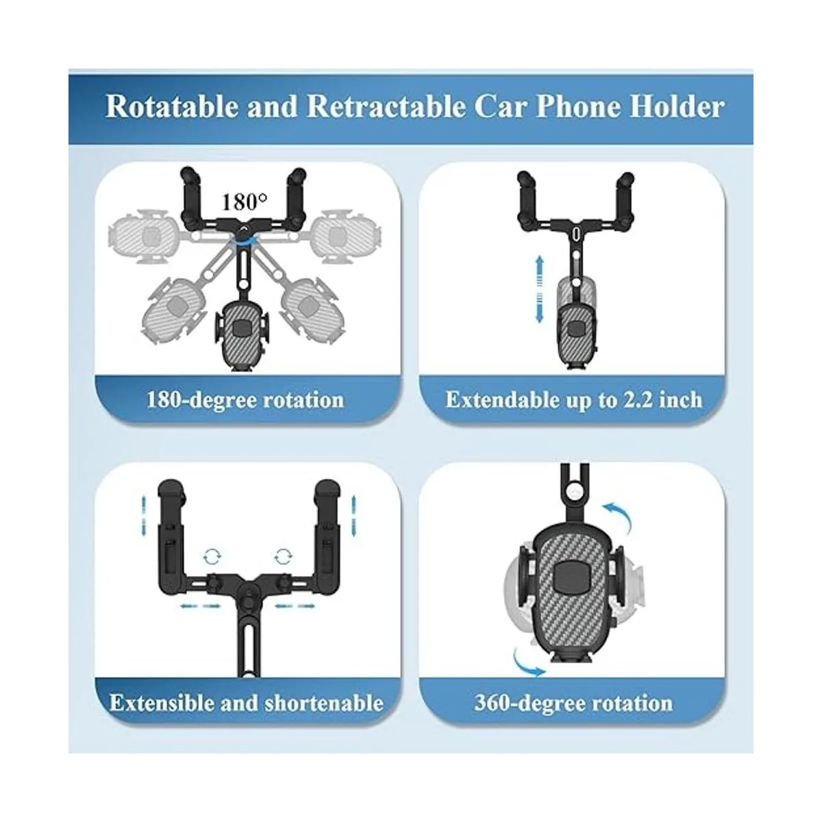Soporte de teléfono para automóvil, giratorio de 360 y retráctil, soporte de teléfono de automóvil, soporte giratorio multifuncional para teléfono de automóvil, soporte universal ajustable para espejo retrovisor para todos los teléfonos inteligentes