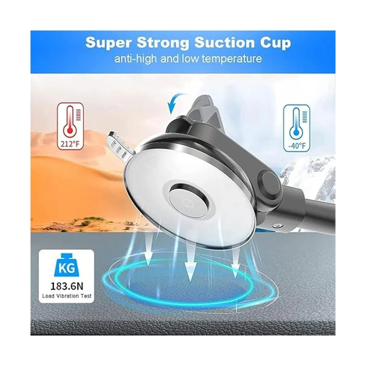 Superpotencia de succión y ultra estable: el soporte de enchufe para coche está hecho de material especial mejorado, la ventosa tiene una gran potencia de succión, no importa un freno duro, un giro brusco, o conducir en carreteras con baches o en climas extremos en Florida o Quebec, el soporte para teléfono del coche puede permanecer firmemente en el salpicadero o parabrisas.