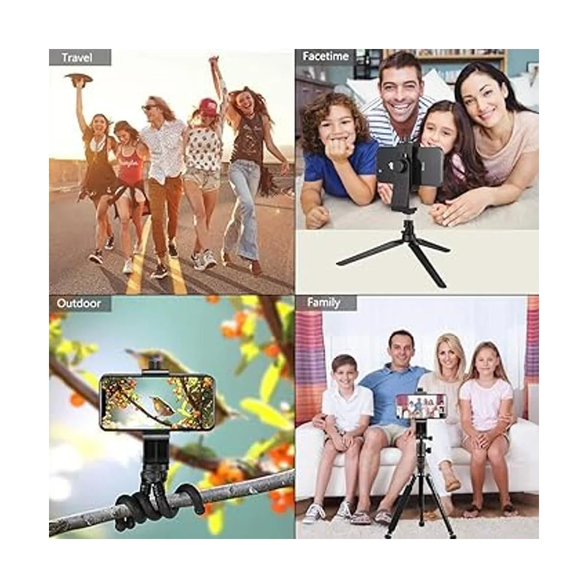 Soporte de trípode para iPhone, teléfono móvil, adaptador de abrazadera con control remoto Bluetoot 360 grados giratorio para todos los smartphones de 3,5 a 6,7 pulgadas, iPhone 12 Pro, iPhone 11 10 9 8 7, Galaxy S21 20 Note 20, Nexus