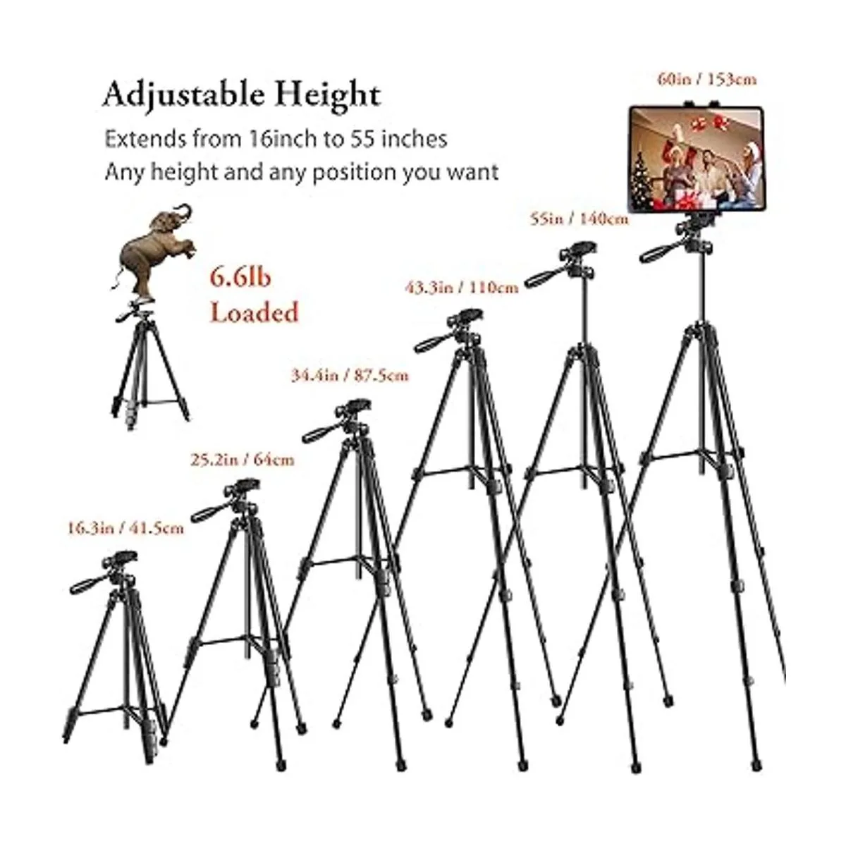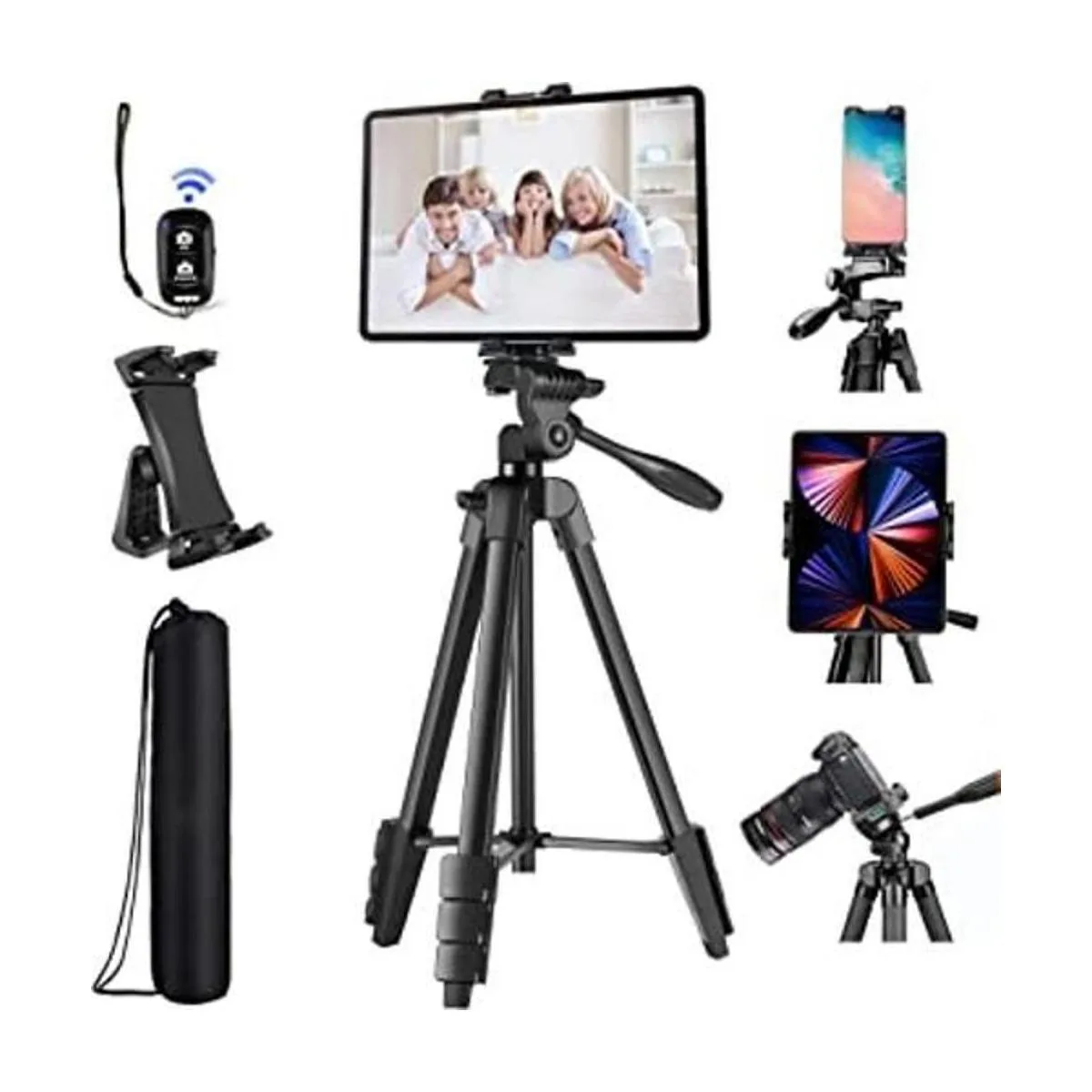Soporte de trípode para tablet iPad de 60 pulgadas con control remoto Bluetooth para iPad Pro Air Mini 12.9 11 10.5 Surface Galaxy Tab, iPhone, tableta de 3.5 a 13.5 pulgadas, grabación de video, cámara