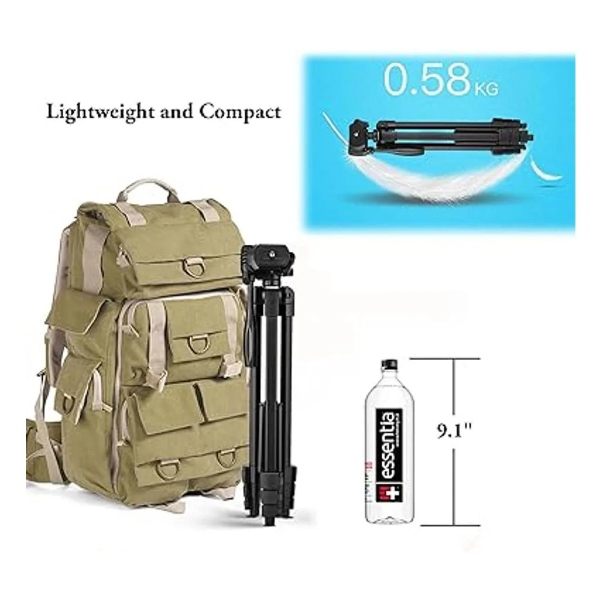 Cabezal panorámico de 3 vías con placa de liberación rápida: cabezal flexible de 3 vías con movimiento de inclinación y giro, el mango giratorio de 360 y el nivel de burbuja integrado te permiten obtener el disparo perfecto en cualquier ángulo cada vez. Placa de liberación rápida con soporte de tornillo estándar de 1/4 pulgadas que garantiza transiciones rápidas entre disparos.