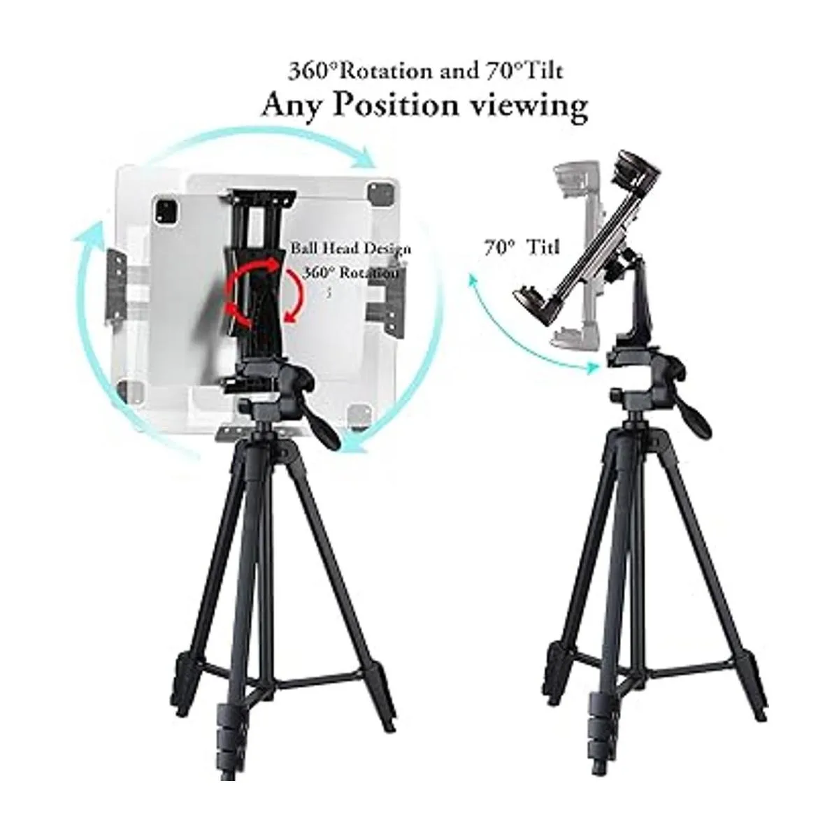 Ligero y portátil: trípode para iPad hecho de aluminio de alta calidad, peso de solo 1.27 libras, tamaño plegable de 16 pulgadas, fácil de llevar. Adecuado para conferencias, presentaciones en el aula, torneos, viajes, vlogging, selfies, fotografía de retratos u paisajes, Facebook Youtube Twitch en vivo, Facetime, ZOOM. Fotos familiares