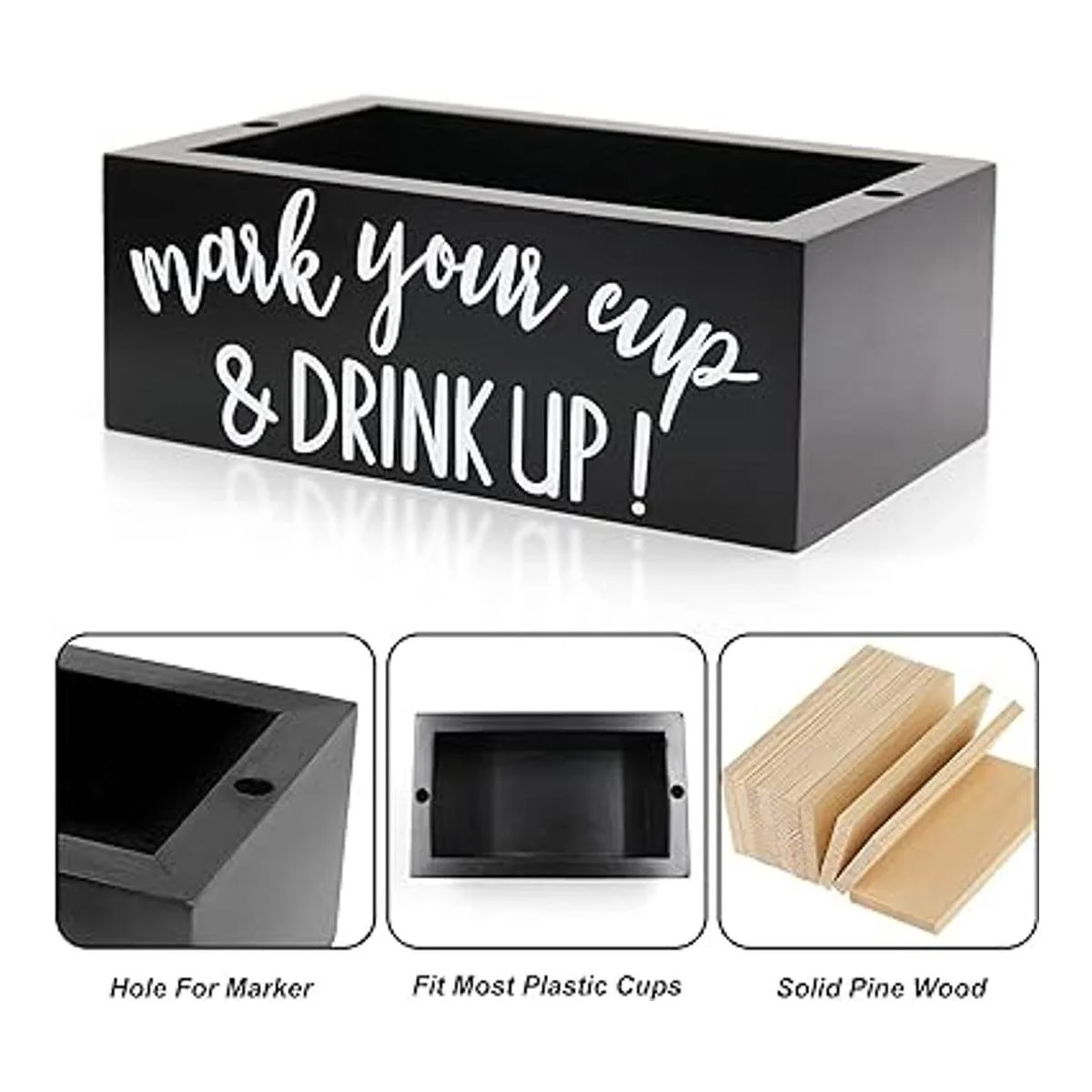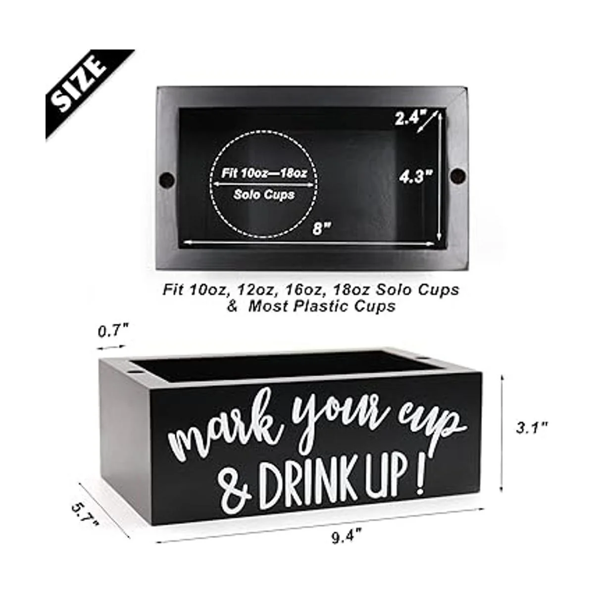 Soporte doble individual para tazas de fiesta, organizador de vasos de madera, marca tu taza y bebida, organizador de bar de granja, decoración de Navidad, fiesta de inauguración de la casa para utensilios, regalo de anfitriona estilo de color negro