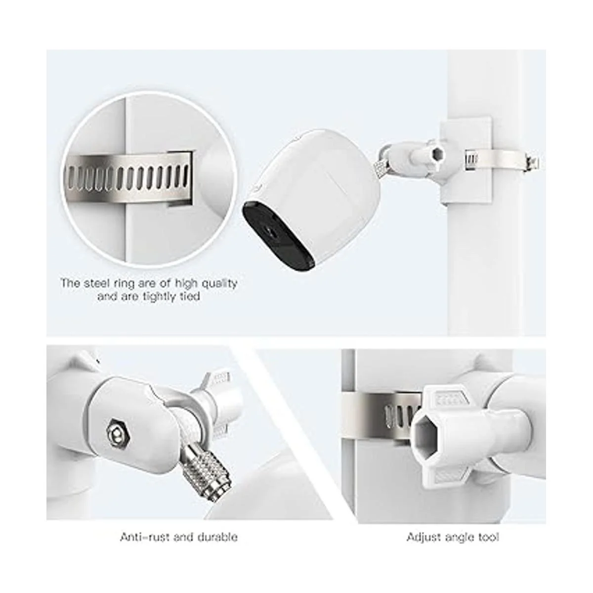 Soporte exterior para Arlo Pro 4Pro 3Pro 2ProUltra 2UltraArlo EssentialReolink Wyze Cam, Reflector y otros, se adapta a tubos de 1.96 a 7.87 pulgadas sin taladrar blanco, paquete de 2