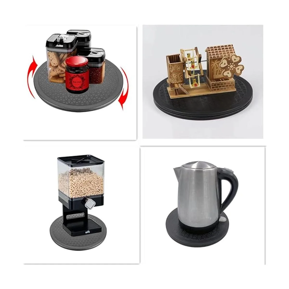 Materiales ABS sólidos y duraderos: hecho de goma de alta calidad y rodamientos internos de bolas de doble anillo, rotación suave, soporta hasta 60 libras. La superficie con patrón de diamante ayuda a sostener objetos; 12 pulgadas de diámetro, 1/2 pulgadas de alto