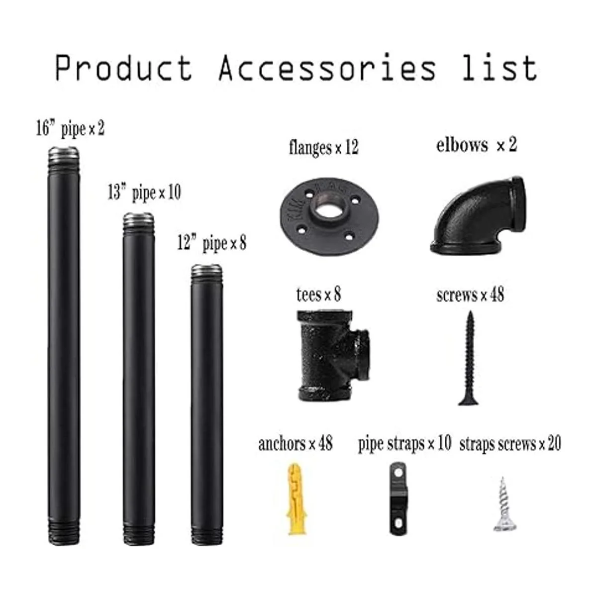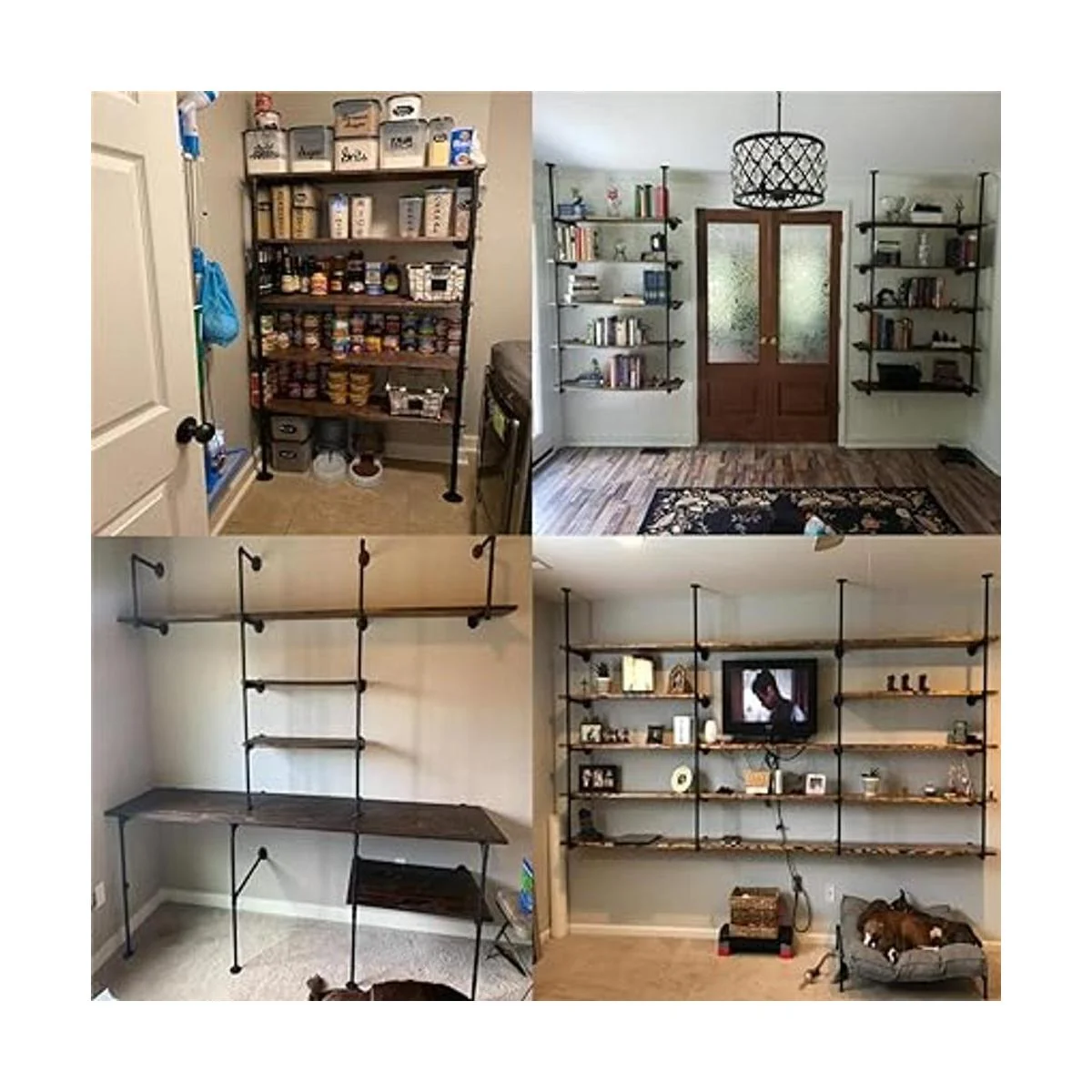 Material: soportes de estantería de metal de hierro rústico industrial para casa de campo, solo estantería de tubería de hierro, no incluye tablones.
