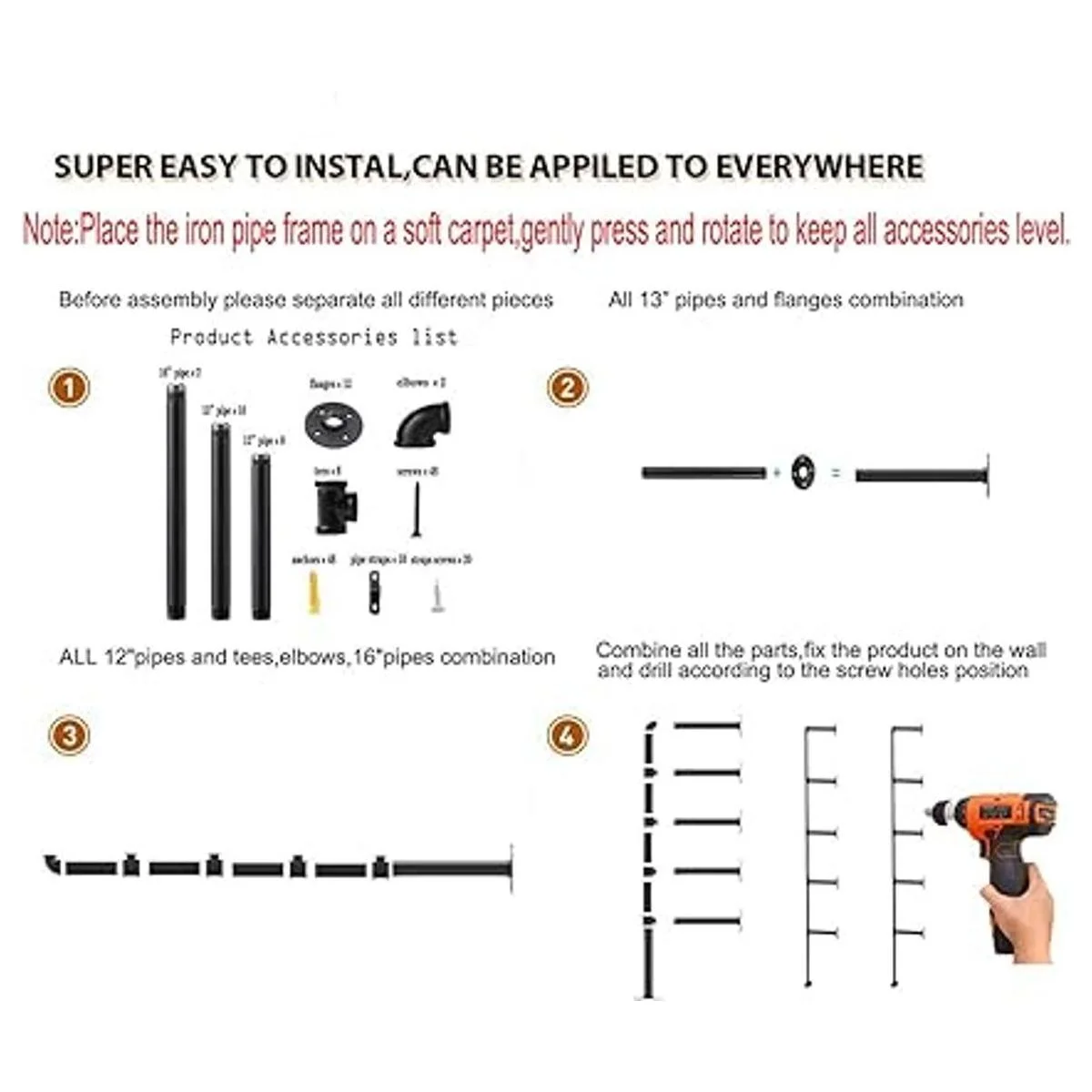 Forma de uso Cada compra incluye todas las piezas necesarias tuberías y accesorios para completar este exclusivo sistema de estante de tubo abierto. Puedes convertirlo en tu estantería, estante de cocina, estante de baño, estante de flores, etc. Añade espacio adicional.