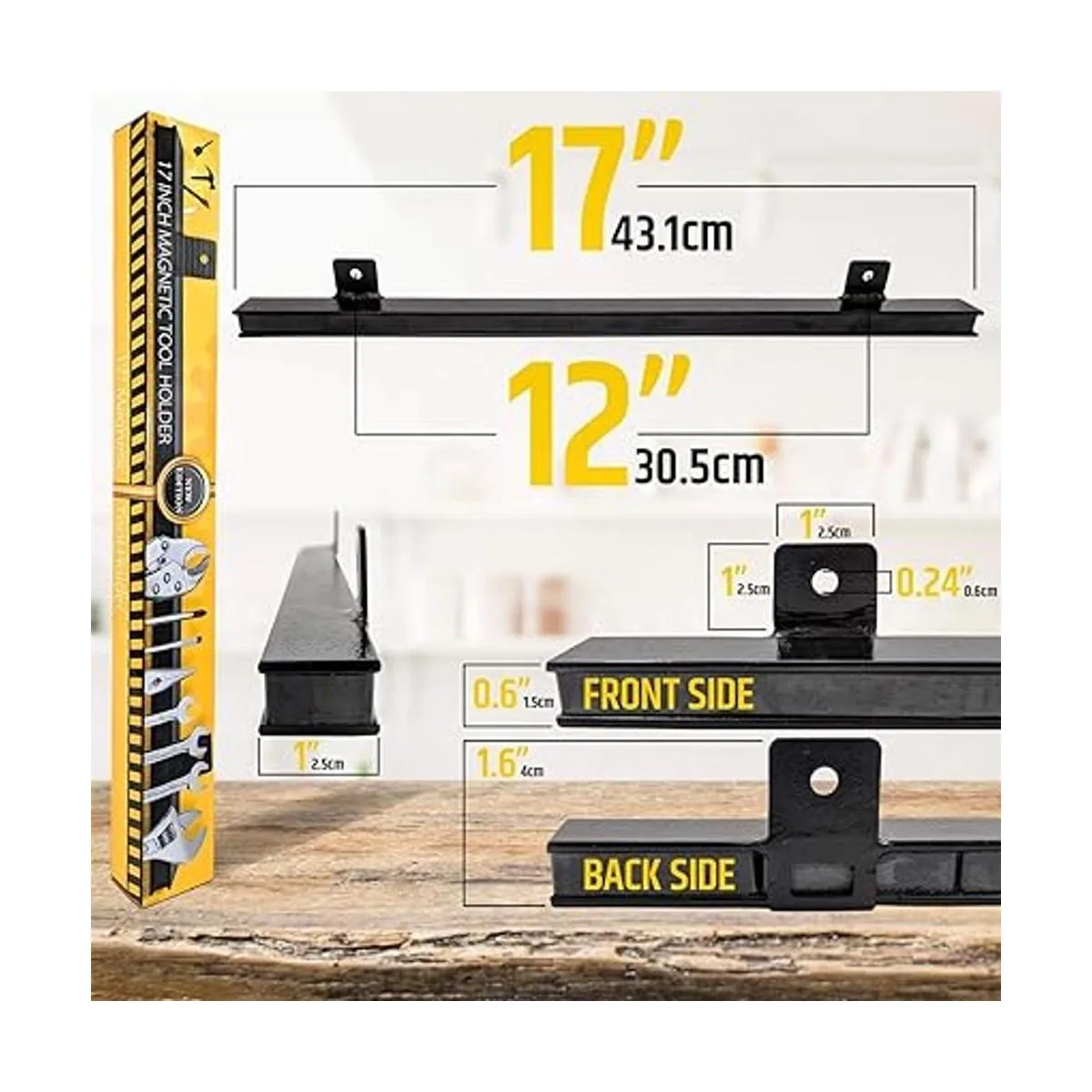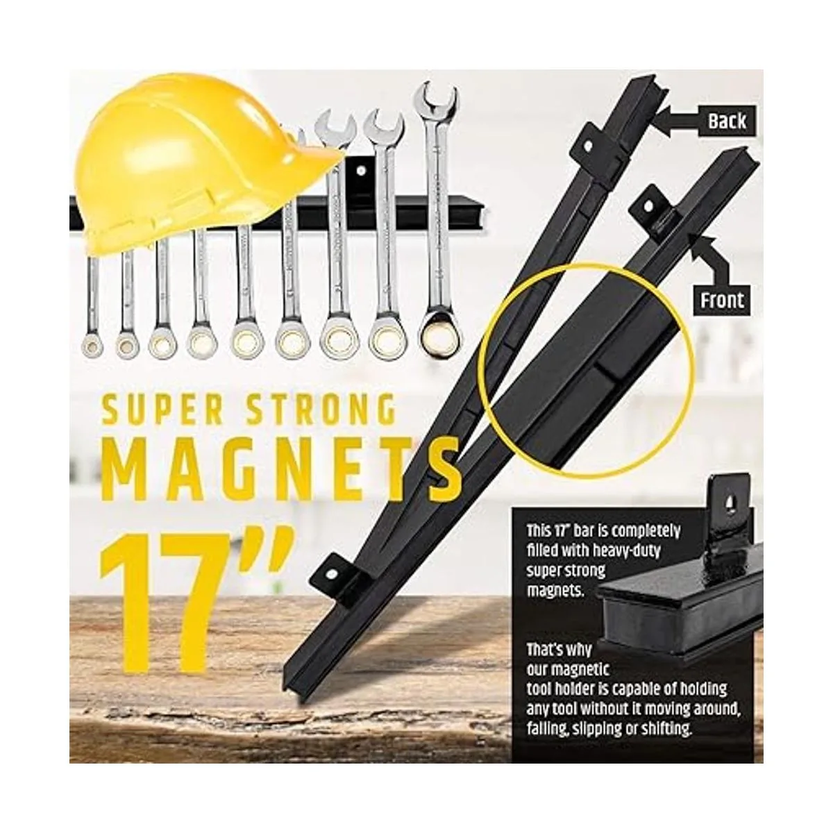 Soporte magnético de alta resistencia de 17 pulgadas versión mejorada Fuerza de tracción magnética extremadamente potente para sostener herramientas pesadas, barra de herramientas magnética profesional que ahorra espacio, estante organizador de herramientas de metal