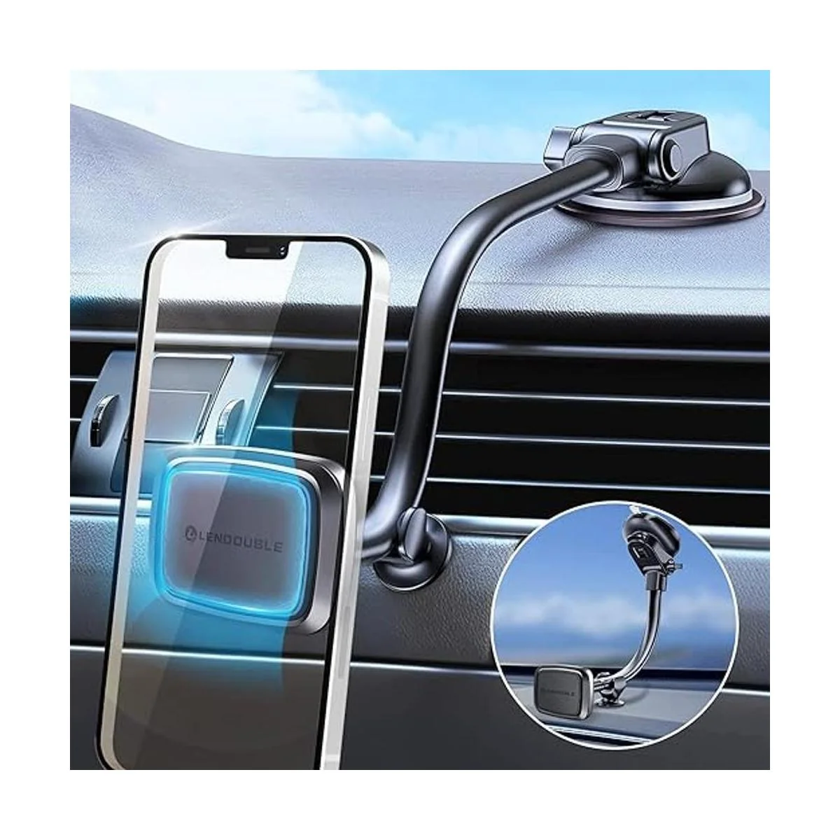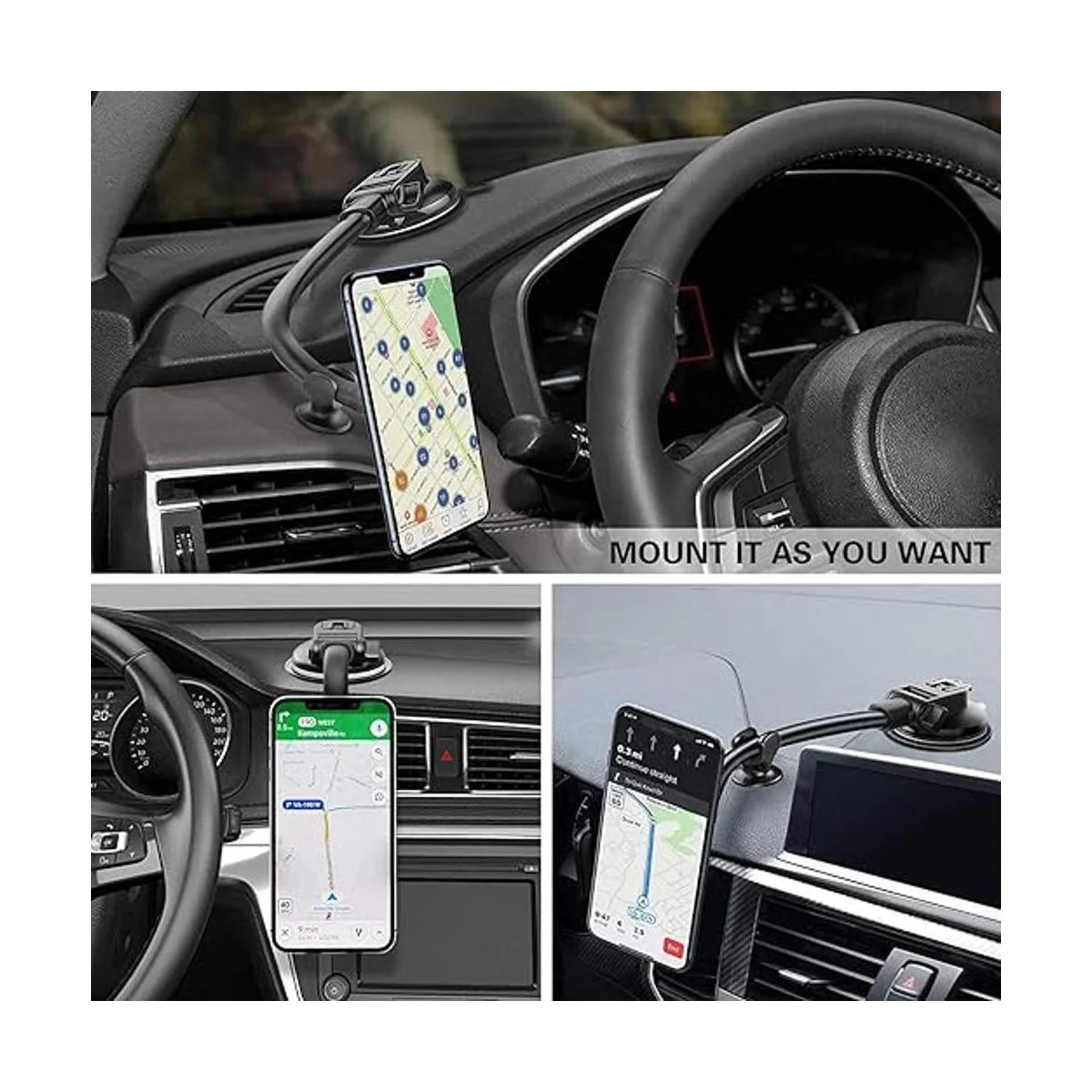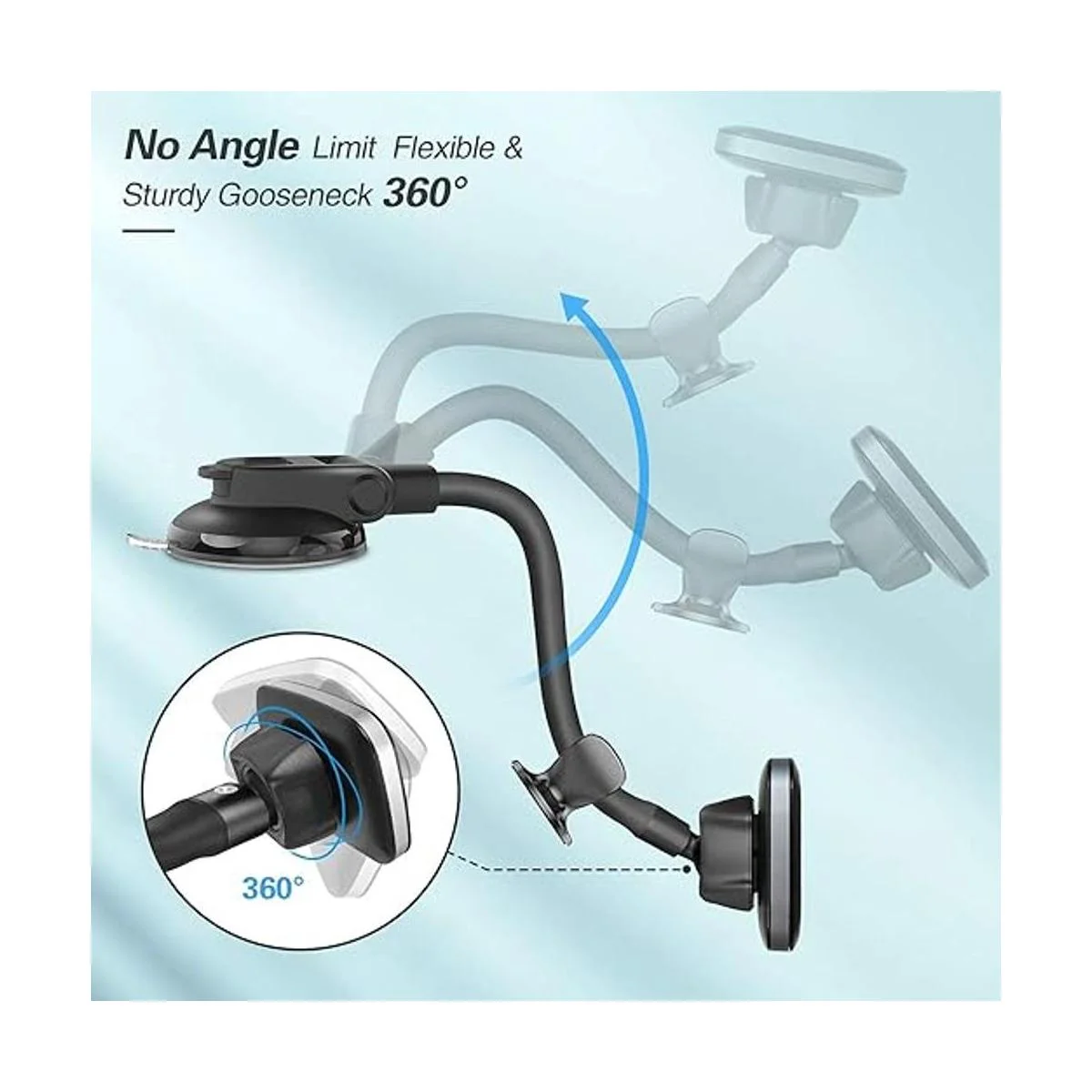 Soporte magnético de brazo largo para teléfono de automóvil, soporte magnético de cuello de cisne con 2 placas de metal y ventosa fuerte, tablero de instrumentos universal de rotación de 360 grados, montaje manos libres para iPhone 14 la mayoría de teléfonos inteligentes