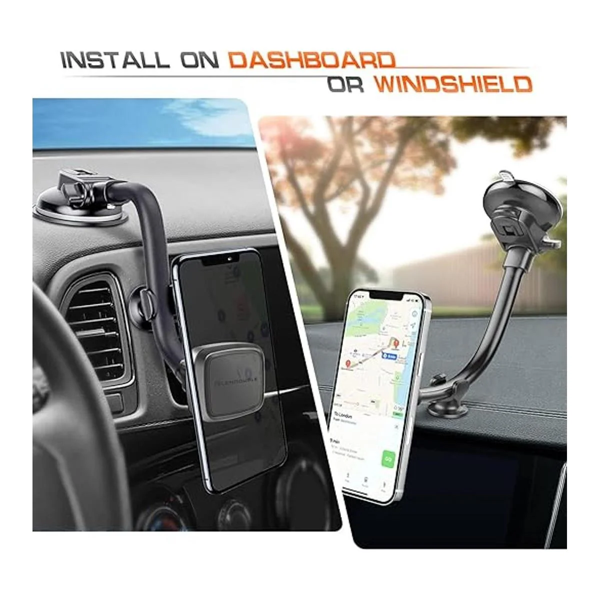 Cuello flexible extra largo actualizado y flexibilidad cómoda: el innovador soporte magnético para teléfono móvil está hecho para la máxima flexibilidad de montaje en el salpicadero, parabrisas, ventana del coche; nueva versión flexible ajustable del brazo de ganso se puede doblar o remodelar para adaptarse a tu salpicadero, tiene un gran rango giratorio, reduce la altura de la base de la bomba de succión de doble contacto, soporte estabilizador multiusos de largo alcance que no interfiere la vista del conductor, ofreciendo una visión sin obstáculos .