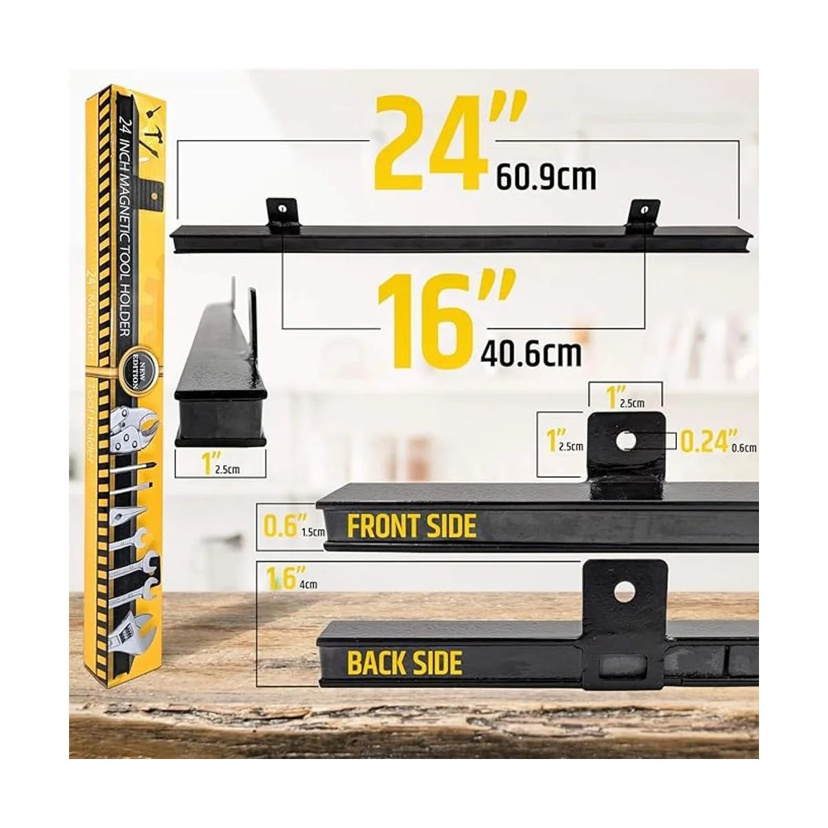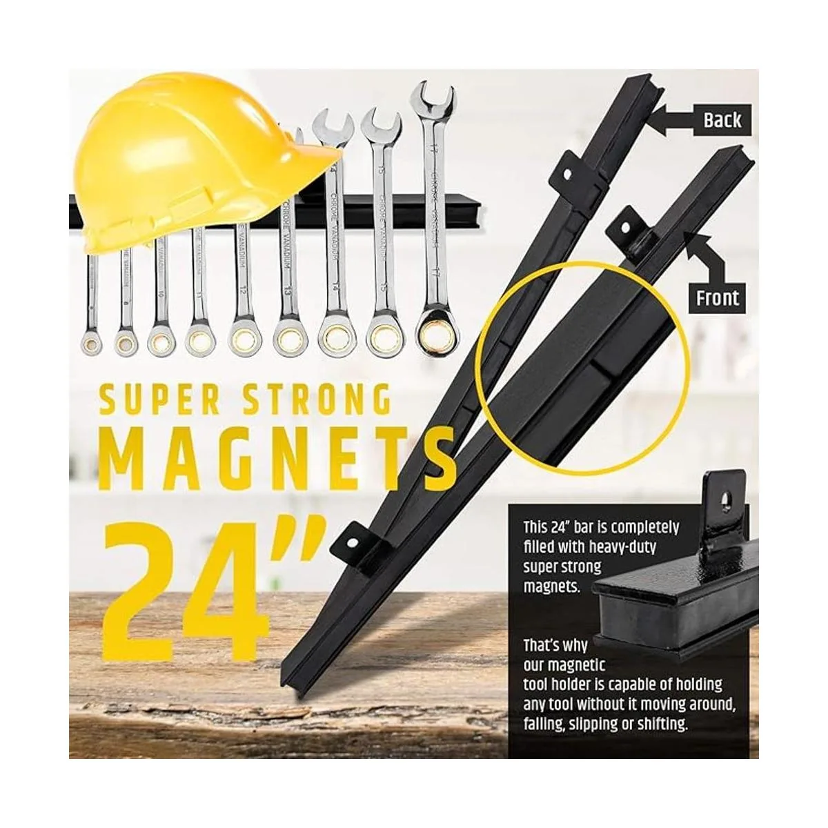 Soporte magnético de herramientas de alta resistencia de 24 pulgadas versión mejorada, fuerza de tracción magnética extremadamente potente para sostener herramientas pesadas, barra de herramientas magnética profesional que ahorra espacio, estante organizador de herramientas de metal