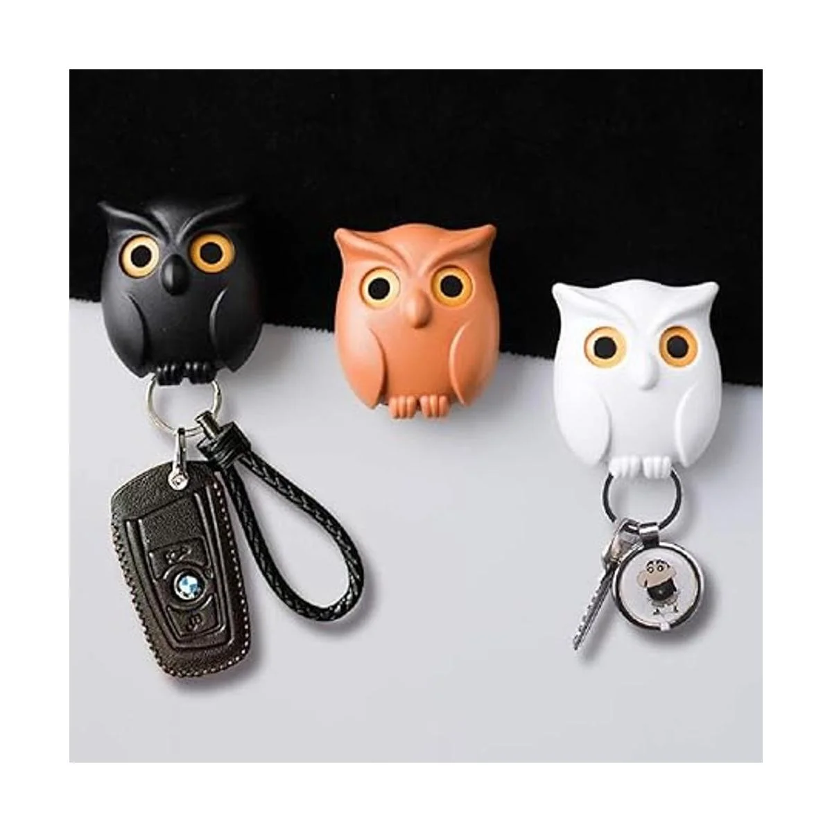 Soporte magnético para llaves de búho, 3 unidades, bonito soporte magnético para llavero de búho, con ojos abiertos y cerrados, soporte de pared creativo para la oficina en casa