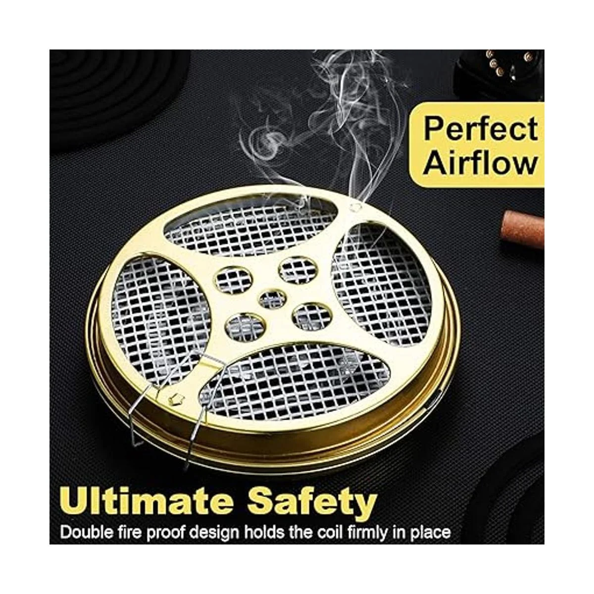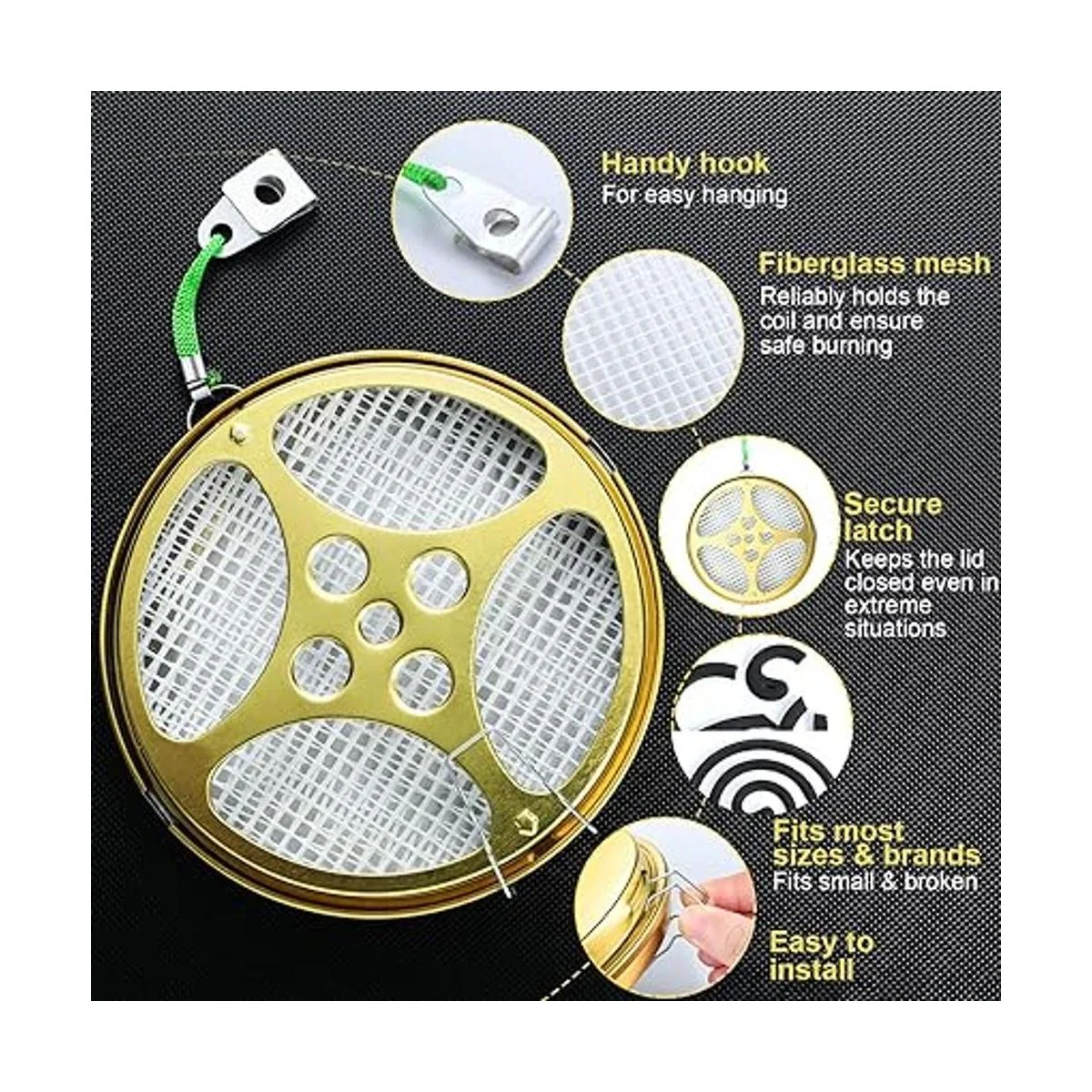 Diseño elegante: la cubierta de la placa de aguja de metal perforada puede hacer que la bobina de sándalo se queme de forma segura sin preocuparse por el contrato accidental por niños o mascotas, el hollín quemado permanece en el soporte repelente de incienso de sándalo, que es fácil de limpiar y reutilizar, cada lado de la red está diseñado con una red de fibra de vidrio ignífuga, que puede fijar la bobina en su lugar para garantizar que no se mueva cuando la lleva contigo alrededor