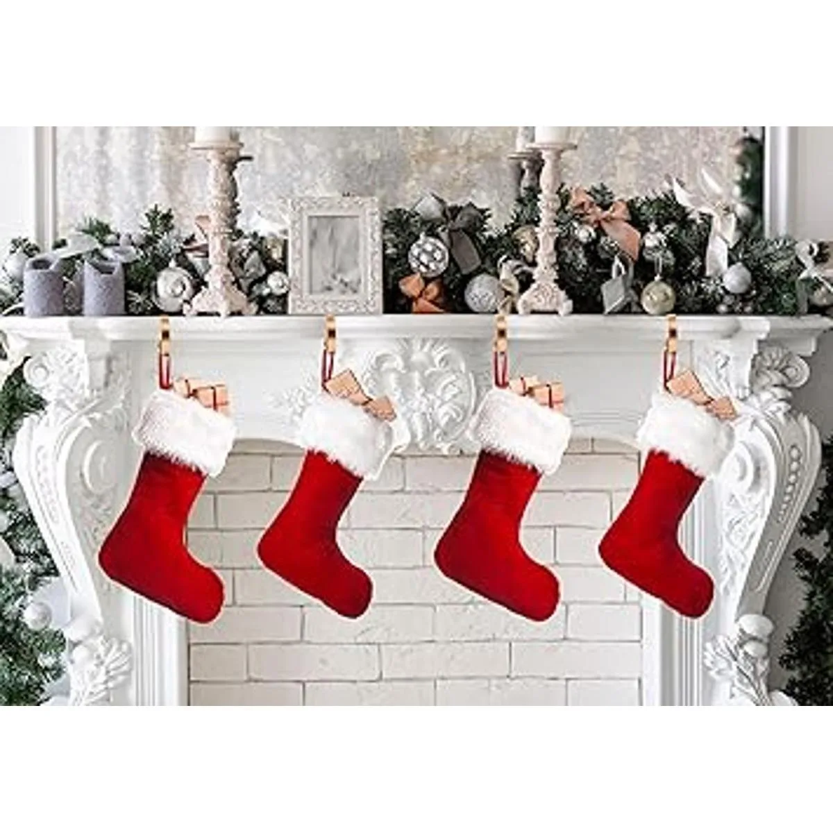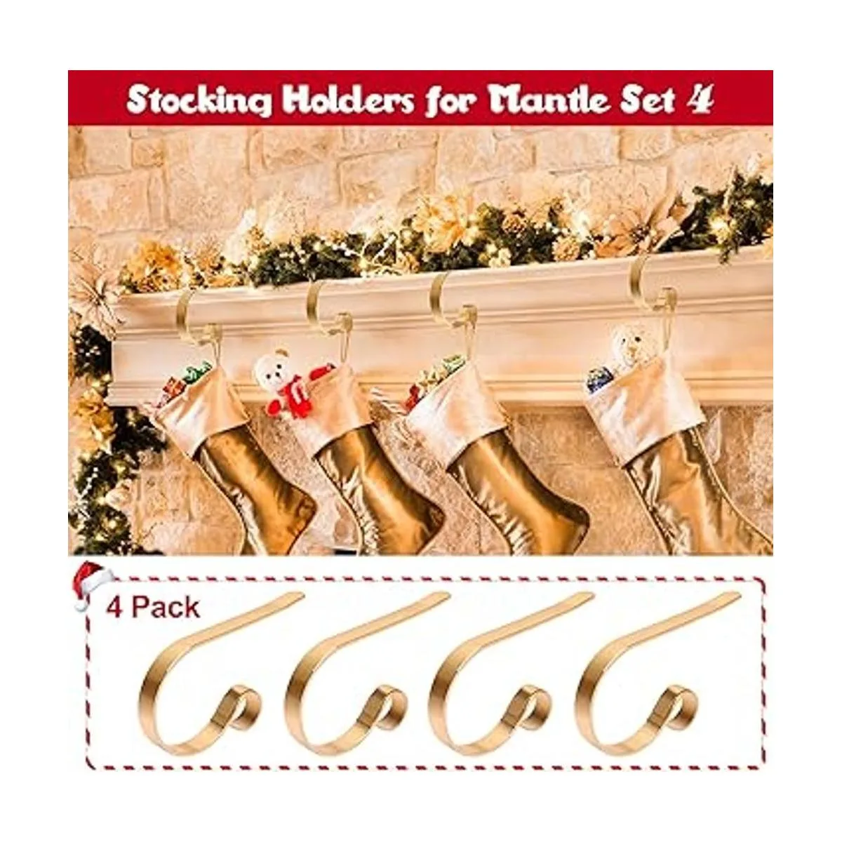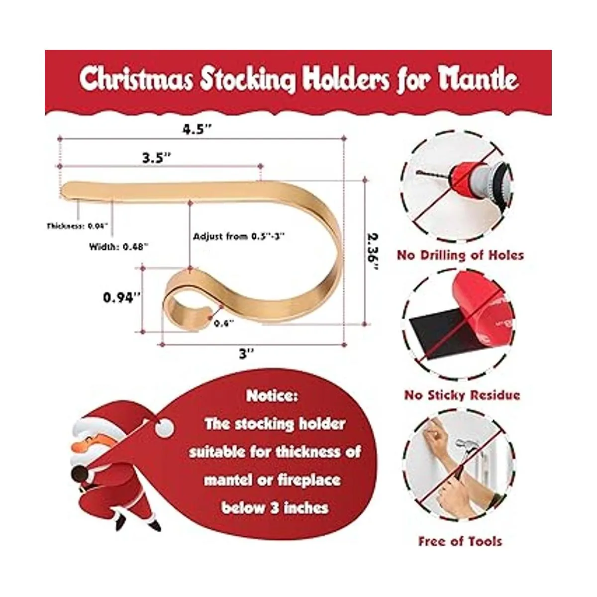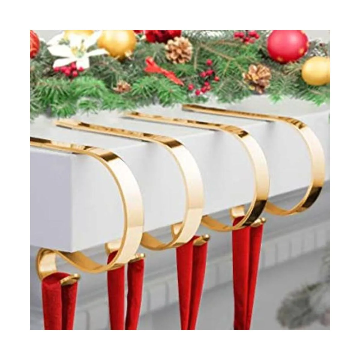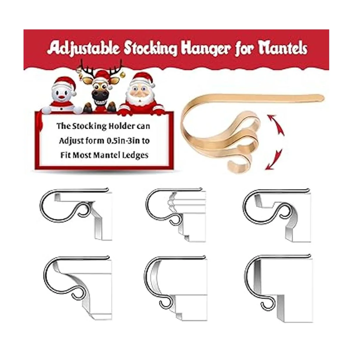 Soporte para calcetines de Navidad, paquete de 4 soportes para calcetines para manta, soportes antideslizantes para decoraciones navideñas, perchas ligeras para chimenea, diseño ajustable, color dorado