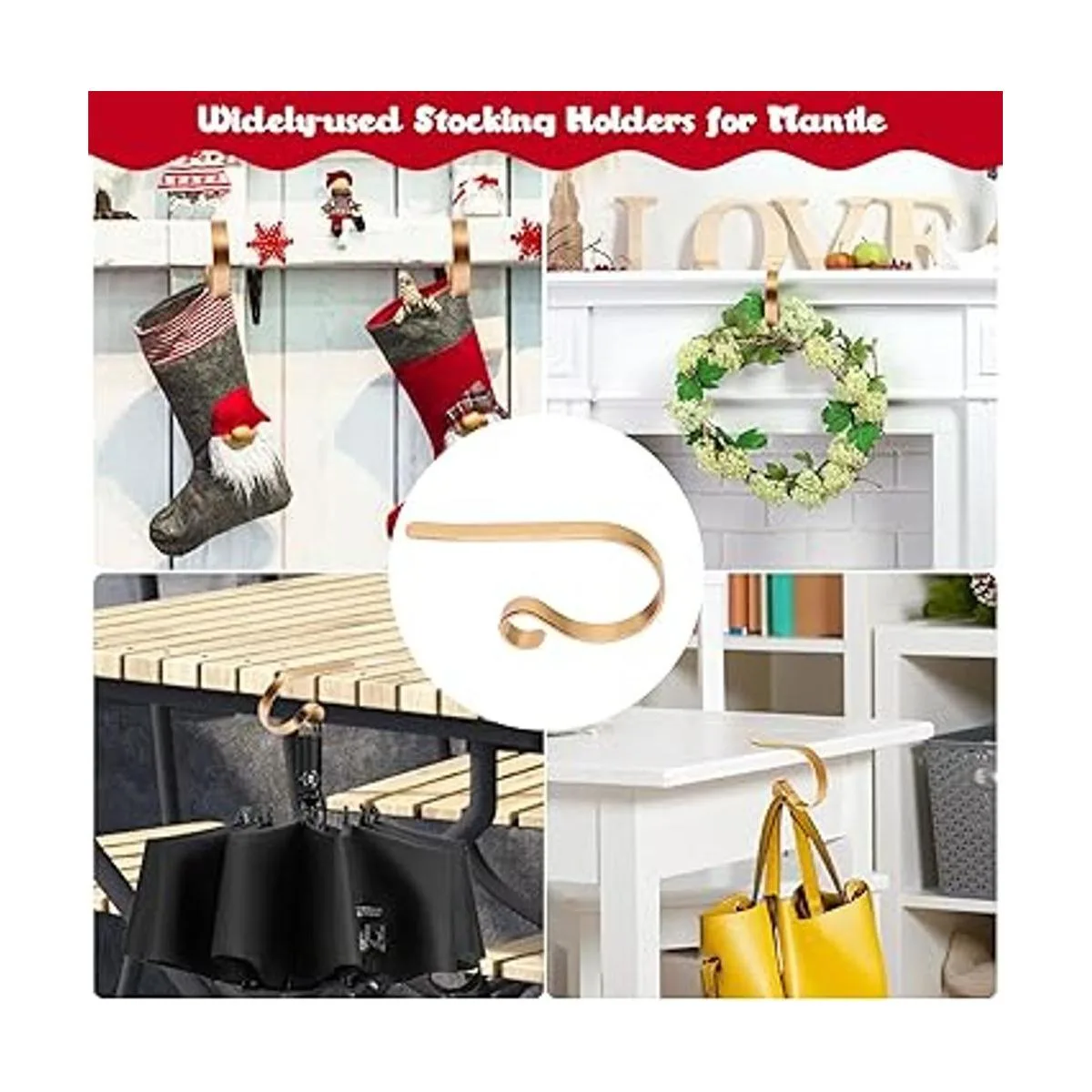 Soportes multiusos para calcetines de Navidad: estos ganchos de Navidad bien hechos para repisa son ampliamente utilizados para colgar tus medias de Navidad u otras decoraciones de Navidad en repisas o chimeneas para añadir un ambiente festivo, como corona de vacaciones y luces de chimeneas. Simple pero práctico soporte para calcetines de mantel, también una mejor opción para usar en cocina y baño, dormitorio, taller y jardín. No solo para decoraciones de fiesta de Navidad, sino también un gran regalo para tu familia y amigos