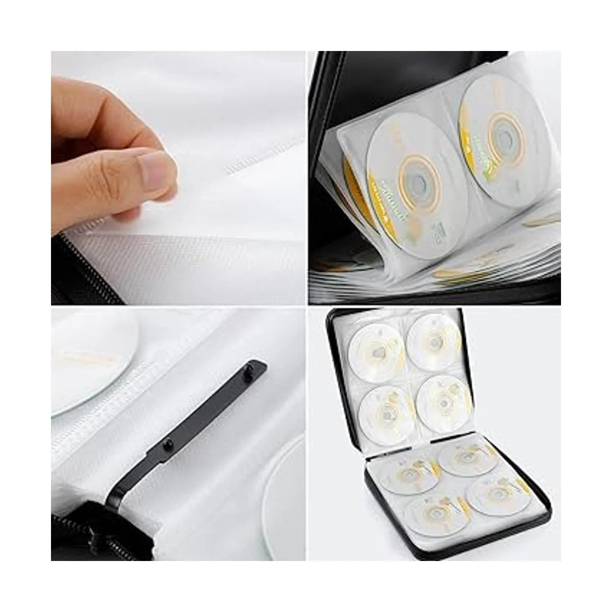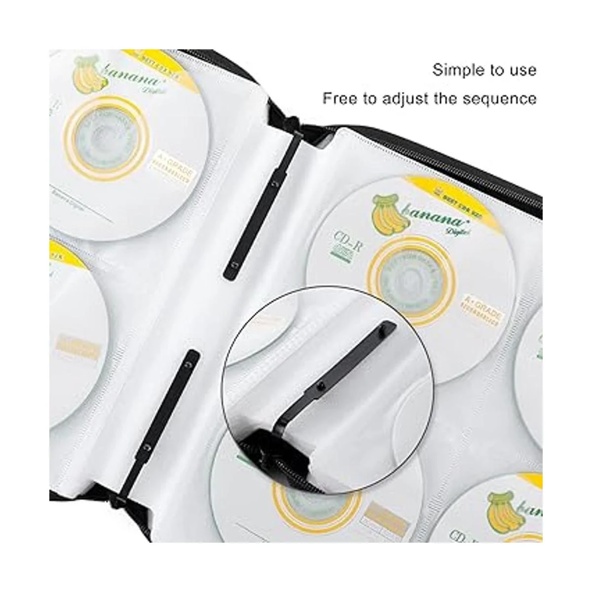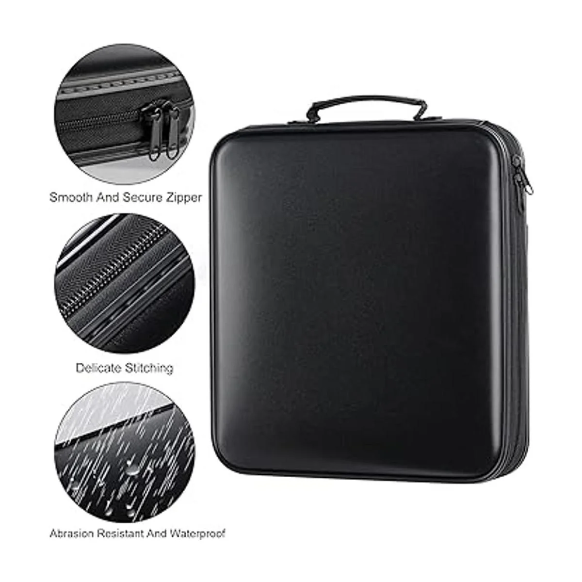 Soporte para CD de almacenamiento de DVD 160 fundas de CD de capacidad, carpeta de fundas de disco negro para coche, caja organizadora rígida de CD, cartera grande de DVD para películas, música, juegos y libro de CD portátil