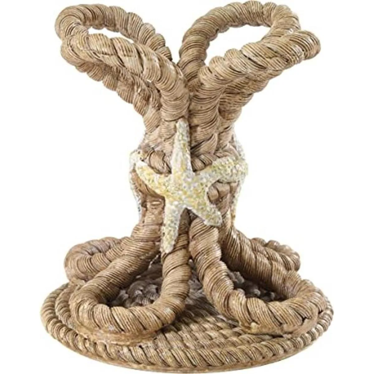 El soporte para cepillos de dientes de la colección Beachcomber cuenta con estrellas marinas y una gruesa cuerda náutica en forma del soporte.