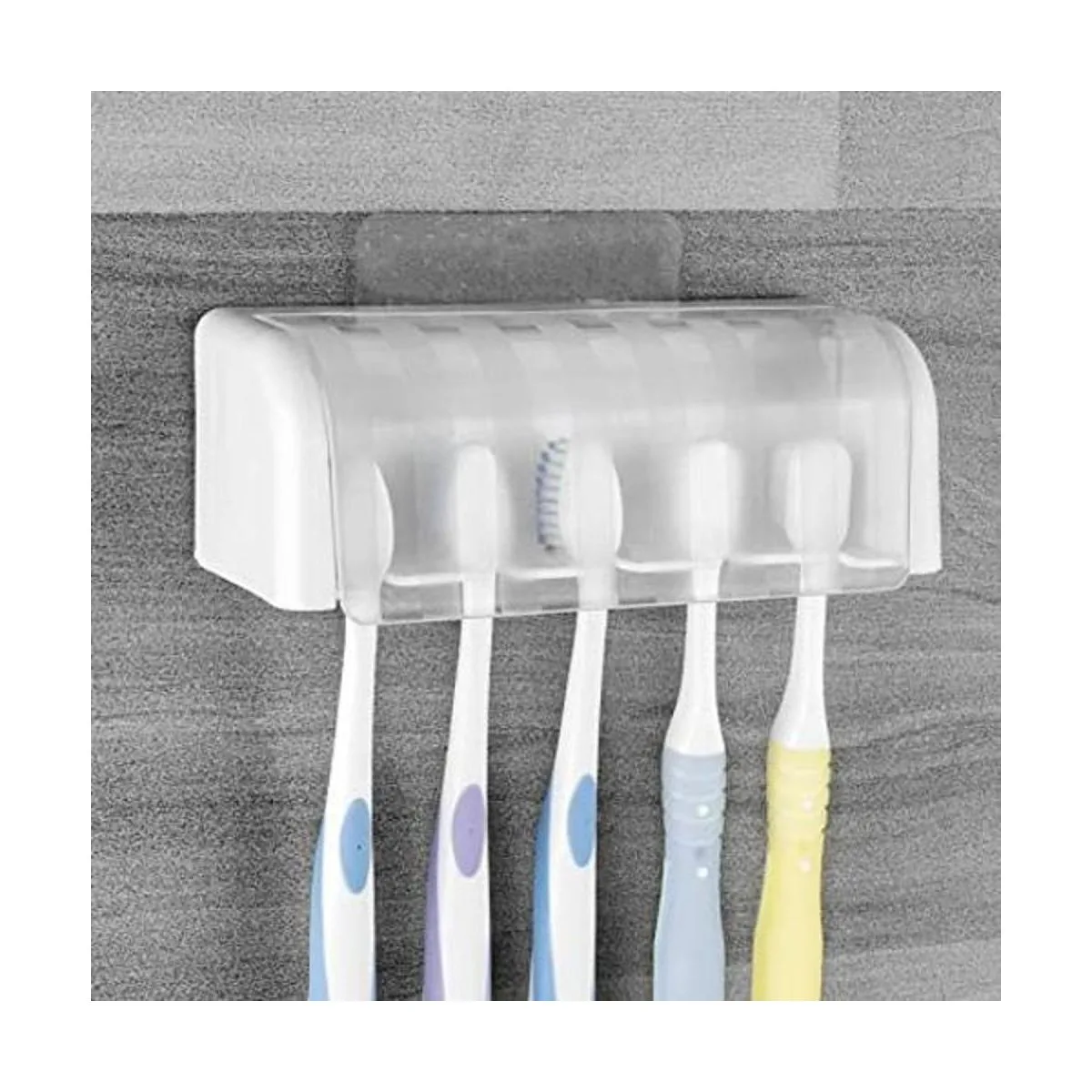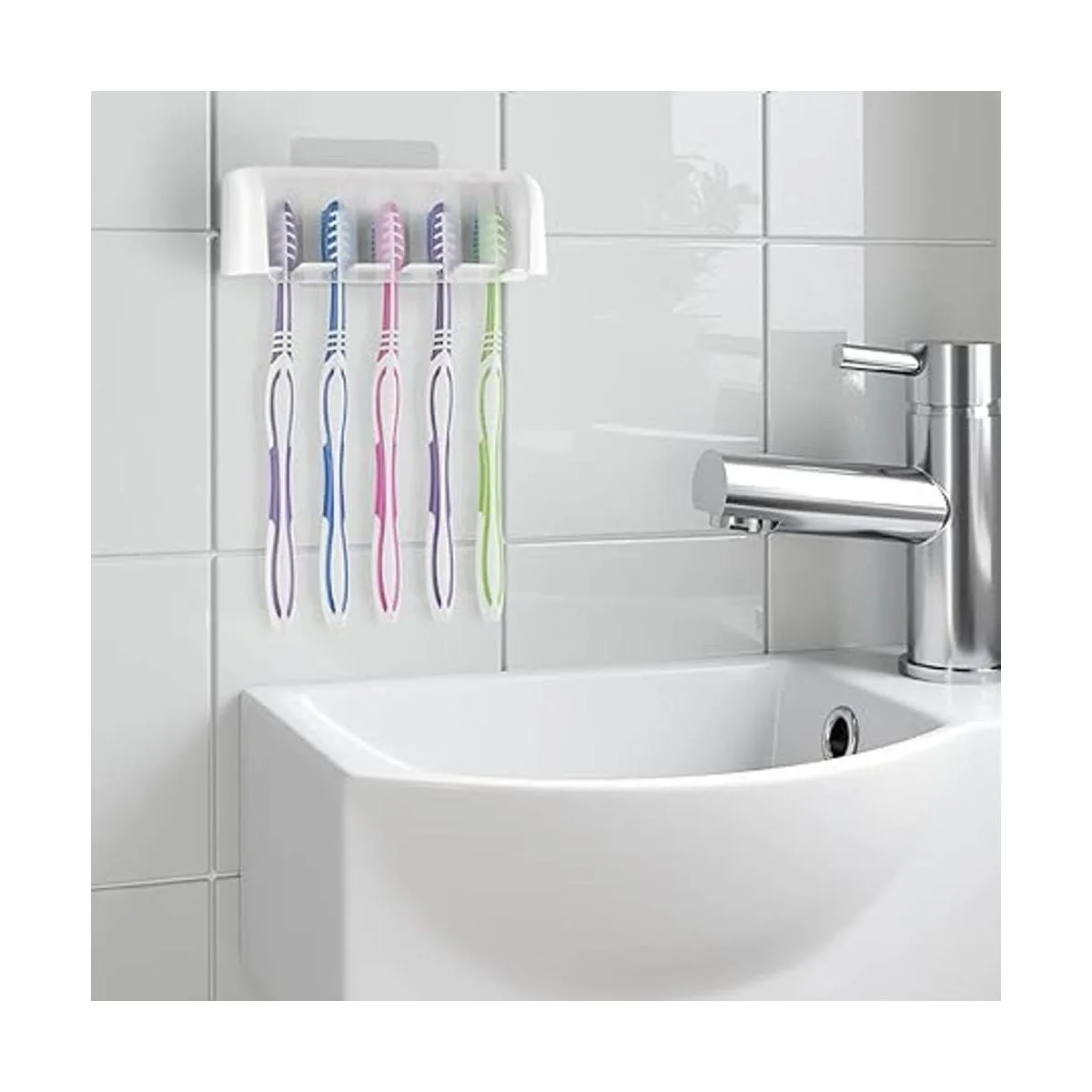 Soporte para cepillo de dientes de 5 ranuras para montaje en pared con funda, organizador de almacenamiento de cepillo de dientes autoadhesivo para ducha, colgador de cepillo de dientes para baño, botiquín y dormitorio