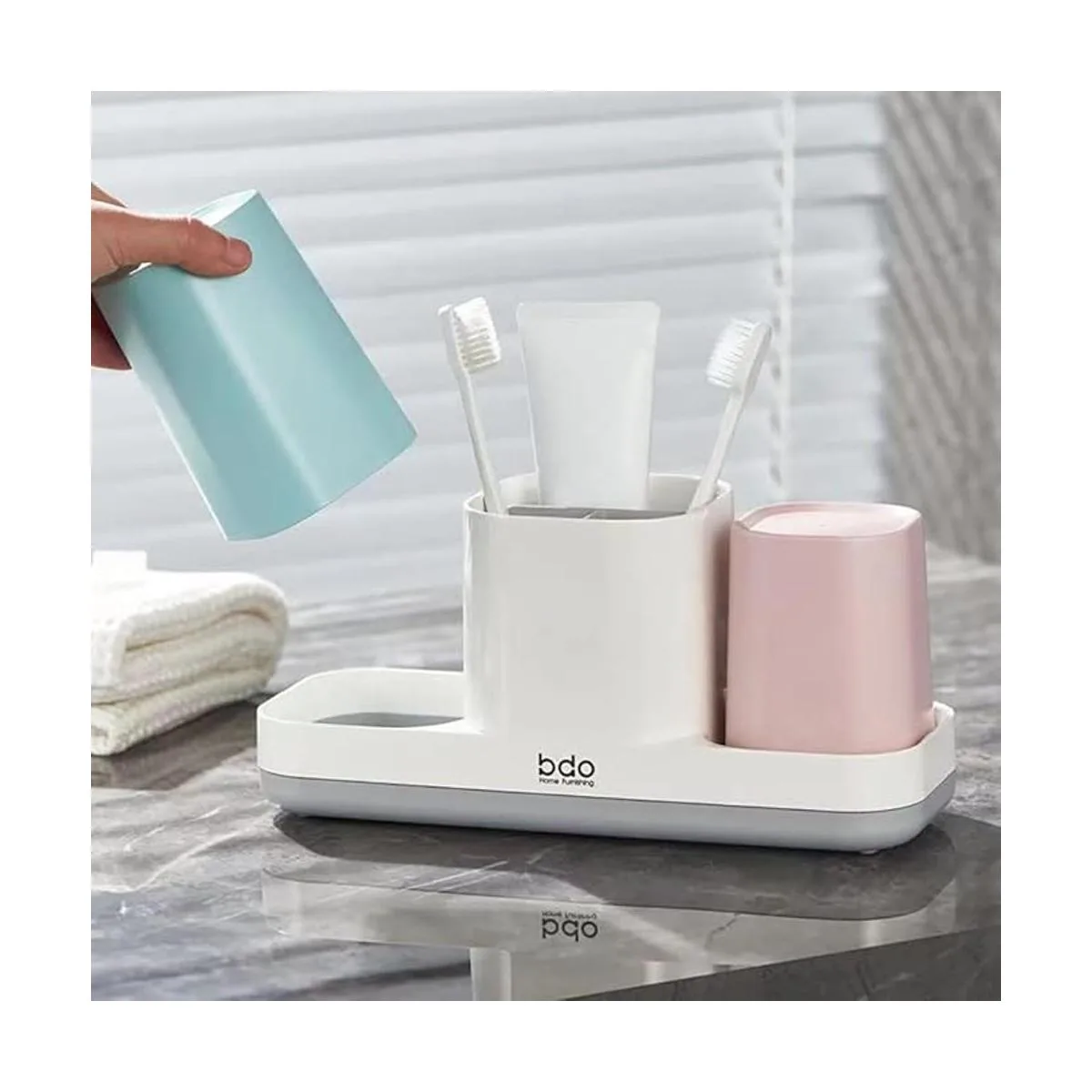Soporte para cepillo de dientes para baño, cepillo de dientes, soporte para cepillo de dientes para niños con taza de baño, soporte para pasta de dientes eléctrico y almacenamiento de accesorios de baño, rosa y azul