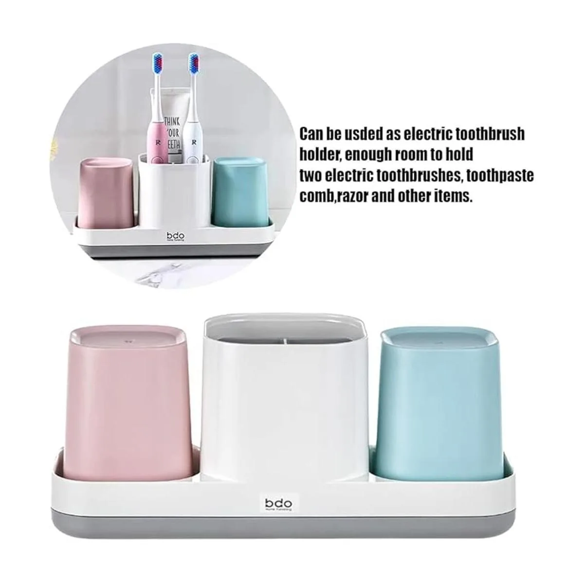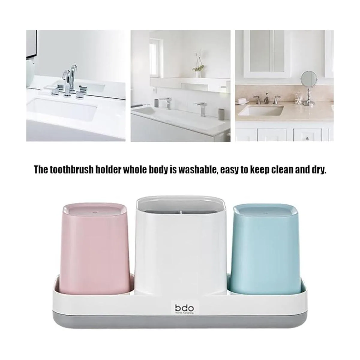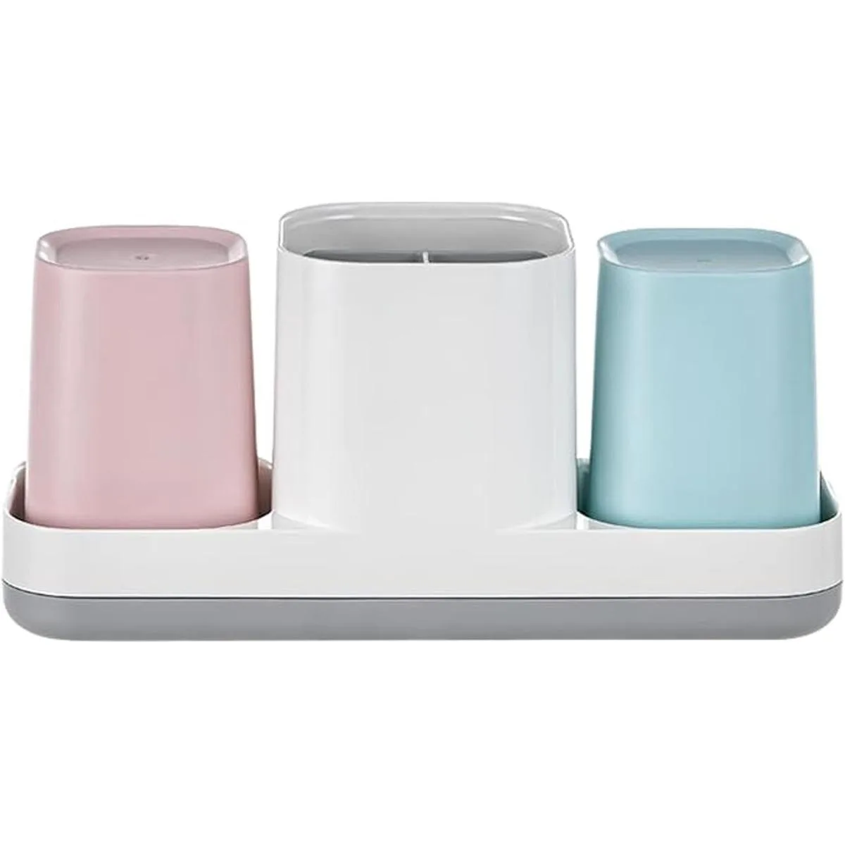 Juego de vasos para cepillos de dientes para niños: este juego de soportes para cepillos de dientes de baño incluye 2 tazas de baño de colores. Diseña 3 ranuras divididas para sostener pasta de dientes y 2 cepillos de dientes eléctricos. Perfecto para niños, parejas y accesorios de baño.