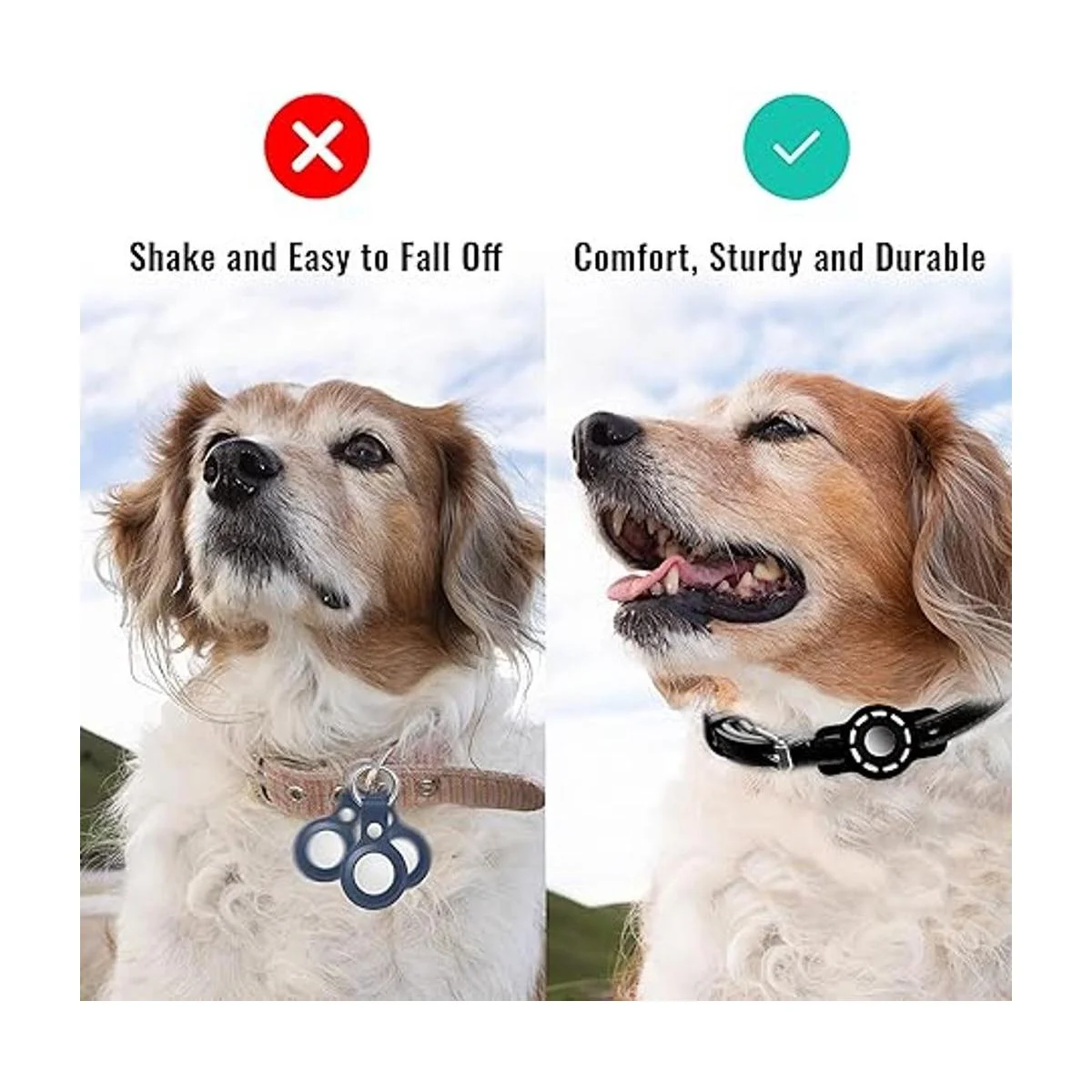 Material apto para mascotas: el material de silicona de alta calidad está hecho para rastreadores de perros y gatos pequeños, que es compatible con fundas de Airtag para collares de perros pequeños y gatos, y es resistente a los arañazos y lavable.