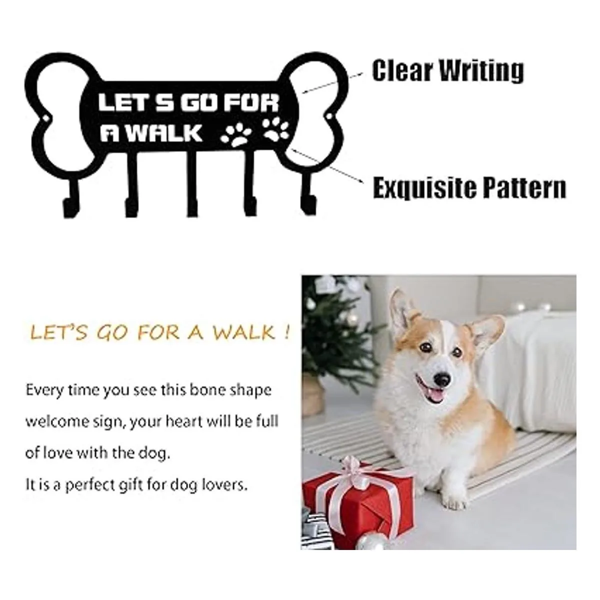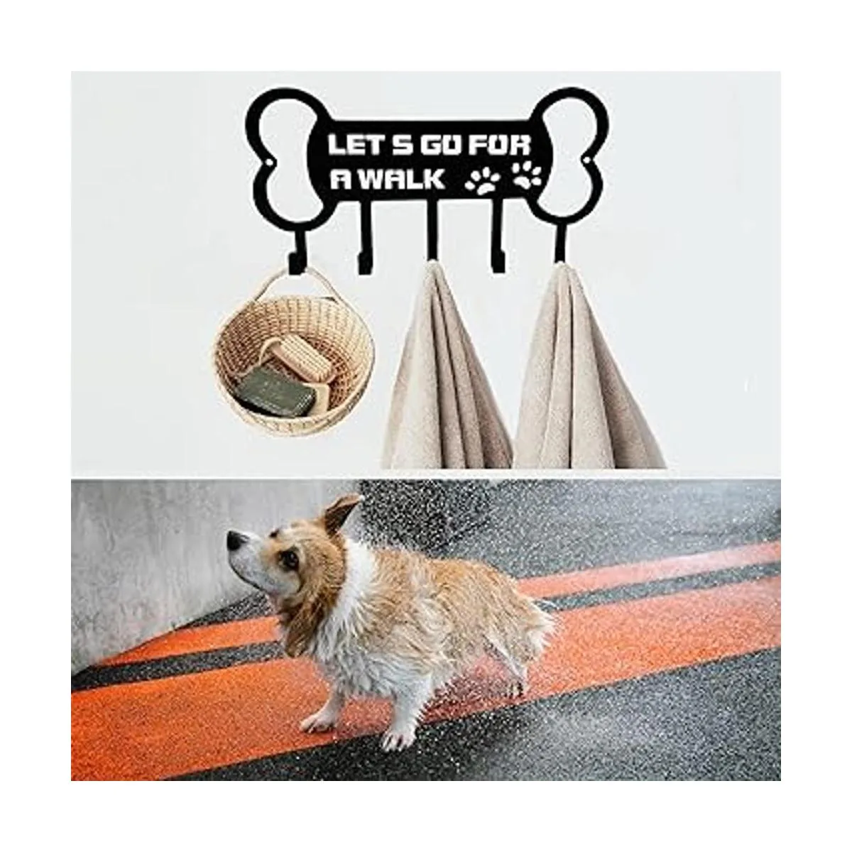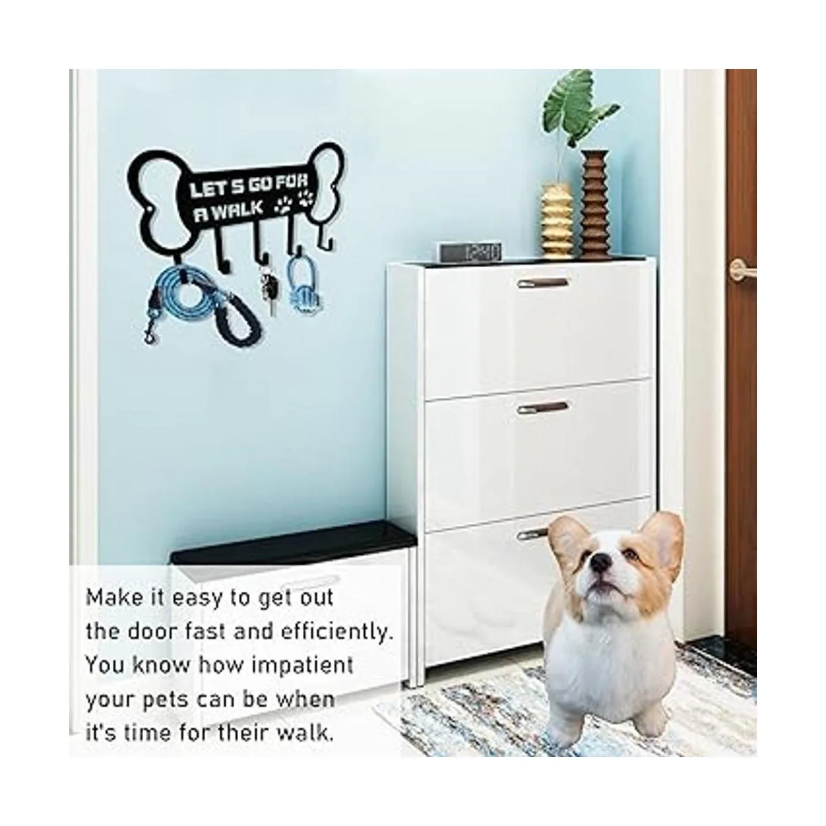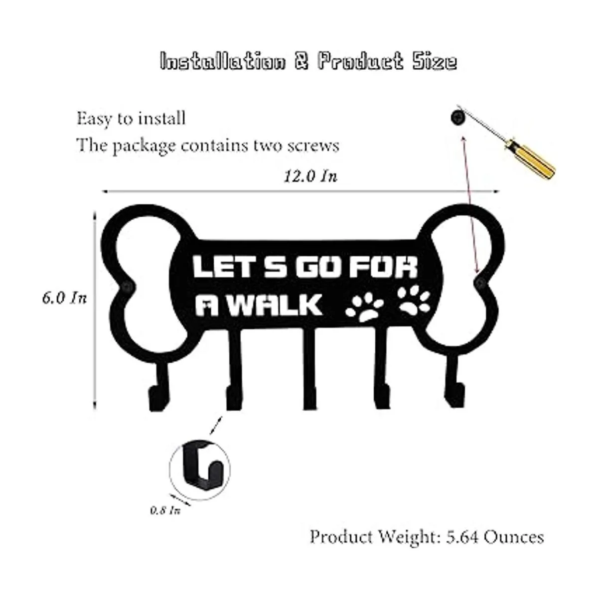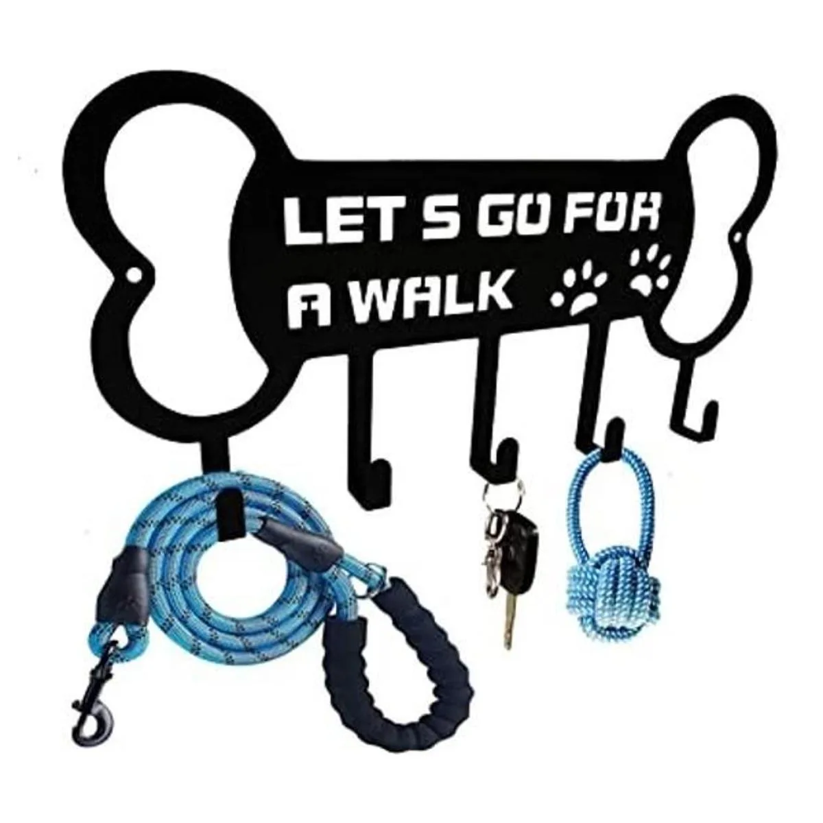 Decoración de pared para el hogar: utiliza este soporte para correa con patrón de pata de perro para colgar y organizar la correa, arnés o ropa de tu amigo peludo. El estampado decorativo de huesos y el texto Lets Go For A Walk elevarán instantáneamente la decoración de tu hogar.