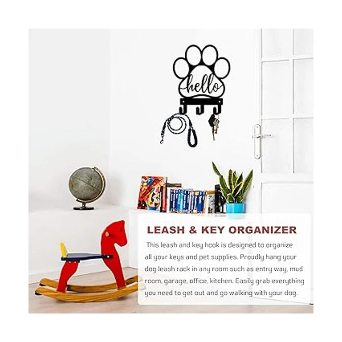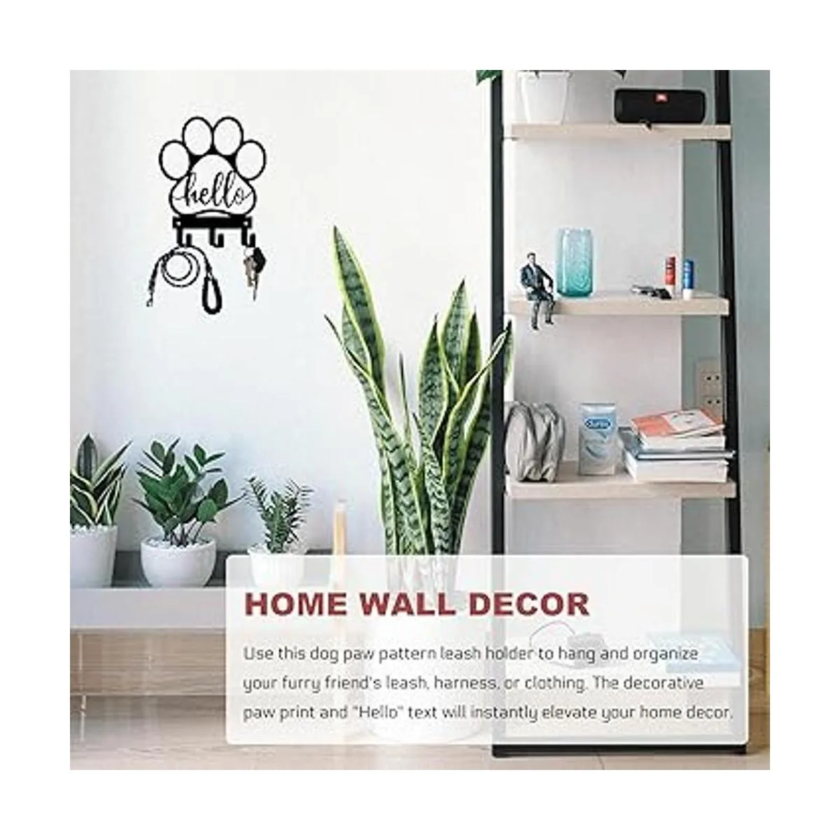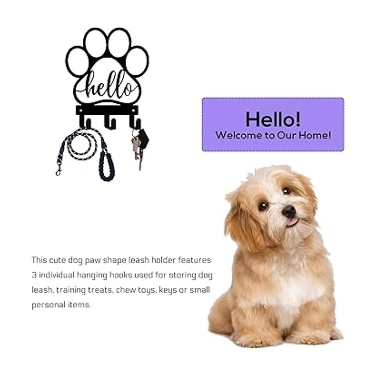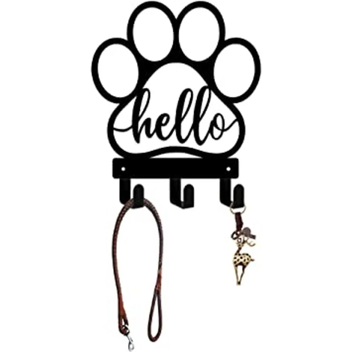 Decoración de pared para el hogar: utiliza este soporte para correa con patrón de pata de perro para colgar y organizar la correa, arnés o ropa de tu amigo peludo. El estampado decorativo de patas y el texto Hello elevarán instantáneamente la decoración de tu hogar.