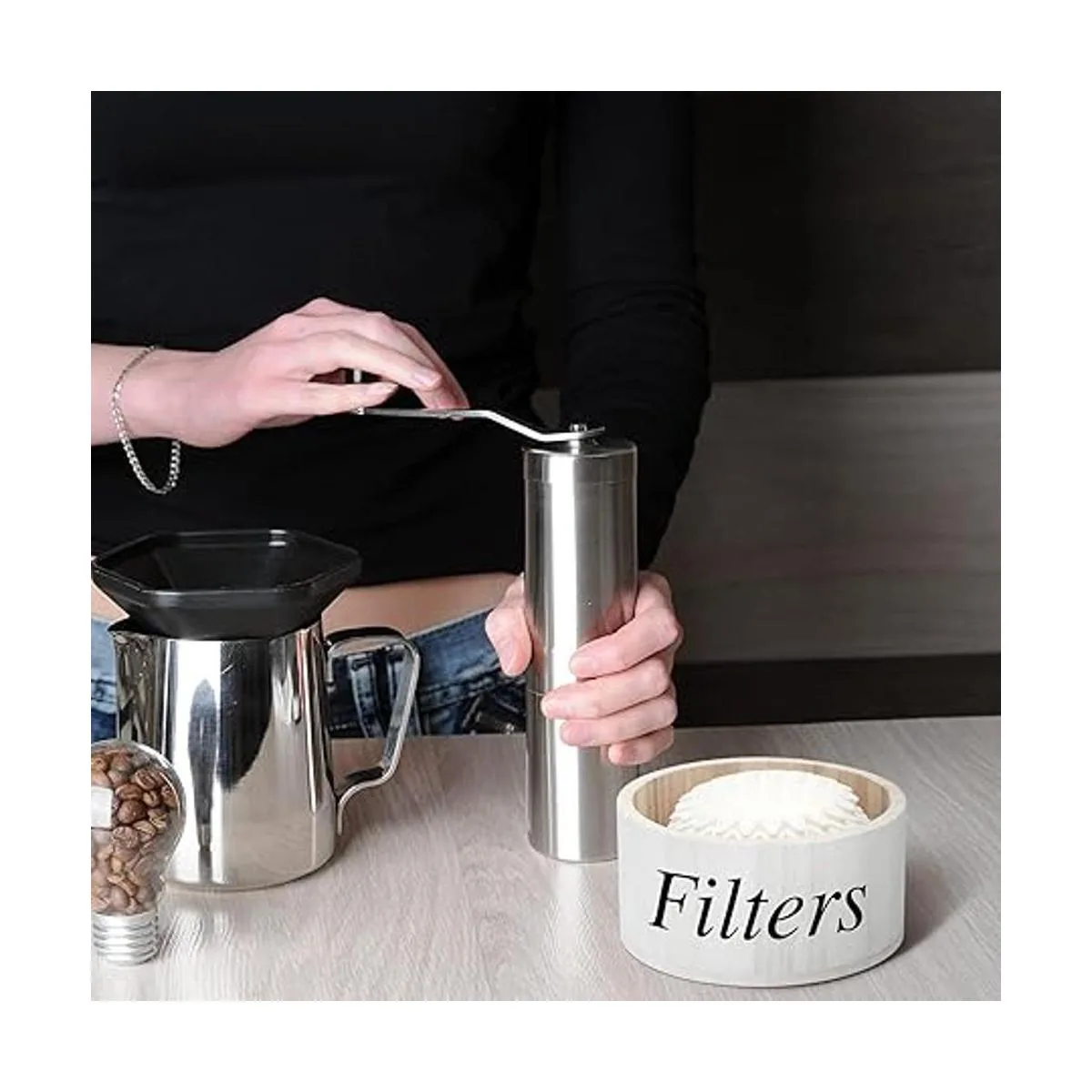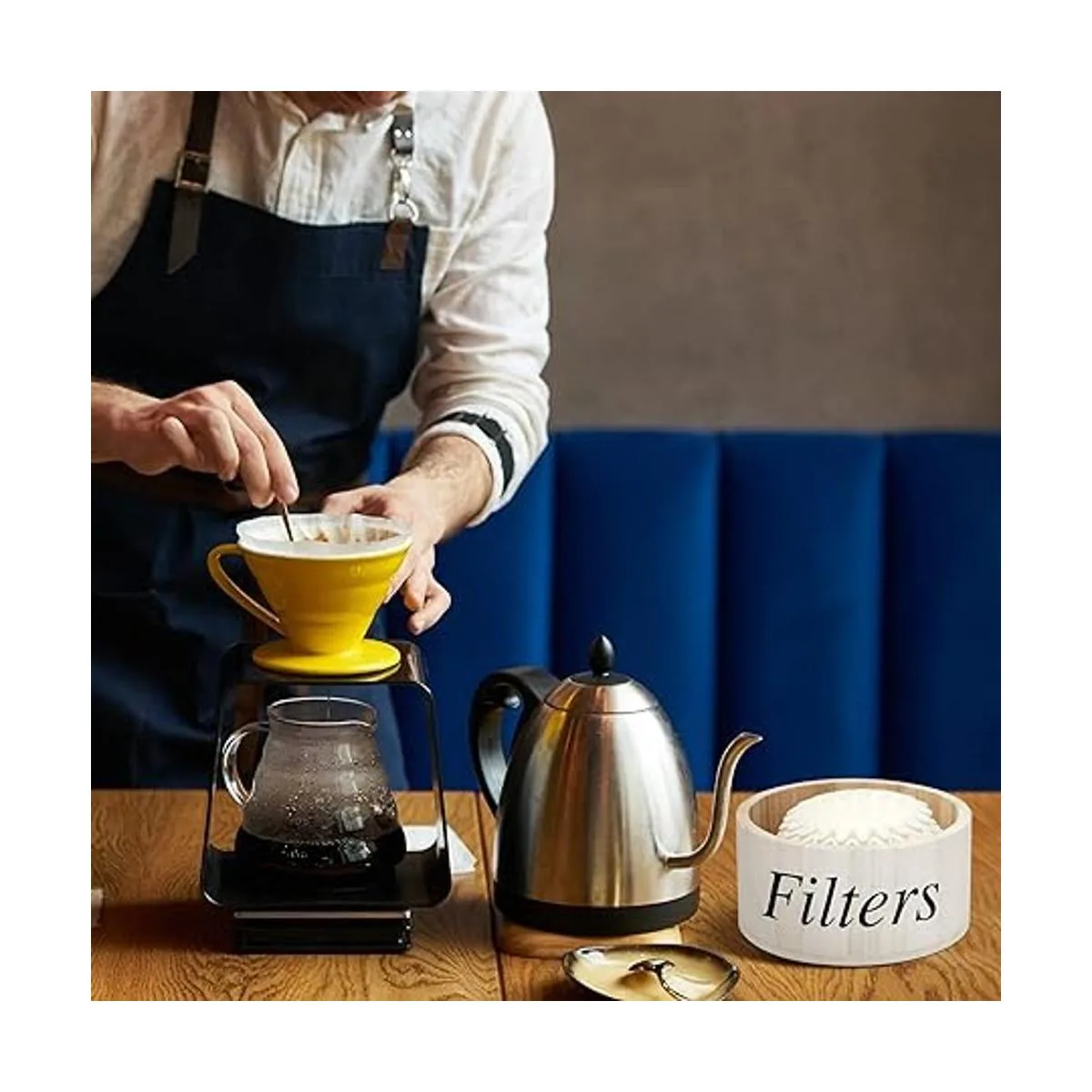 Organizador con tapa: nuestro dispensador de papel de filtros de café está equipado con una tapa, por un lado, puede mantener eficazmente el papel de filtro de café lejos del polvo y otros artículos diversos, por otro lado, el mango en la tapa es conveniente para que obtengas papel de filtro de café, lo que es práctico