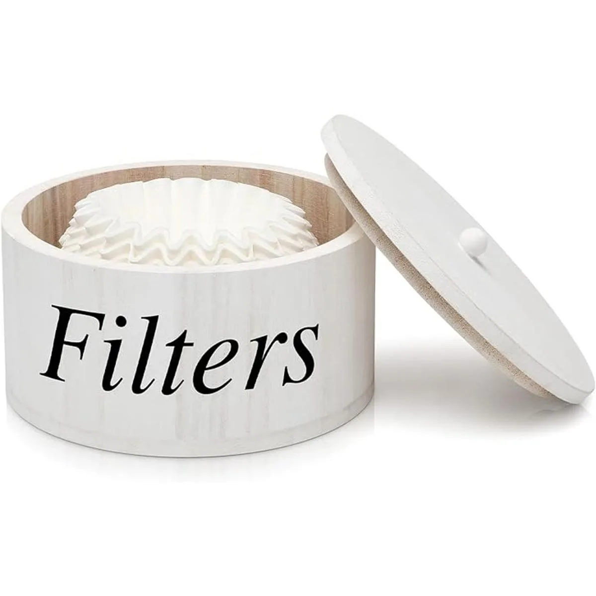 Soporte para filtro de café, contenedor de almacenamiento de filtro de café de madera con tapa, accesorios de barra de café, organizador de estación de café de granja para almacenar varios papeles de filtro, bolsas de té, granos de café, blanco