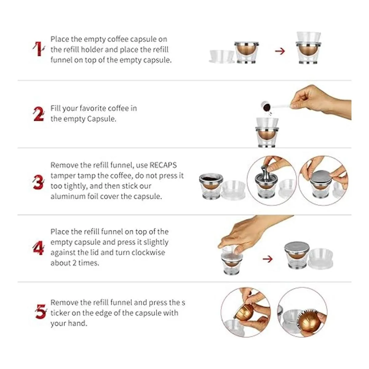 4. Conveniente para rellenar la cápsula con moliendas sin que entren en los bordes.