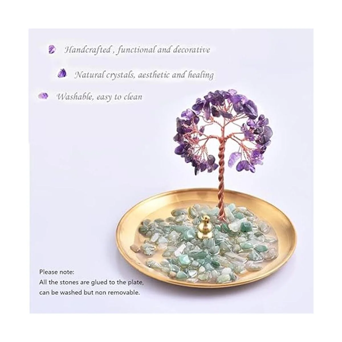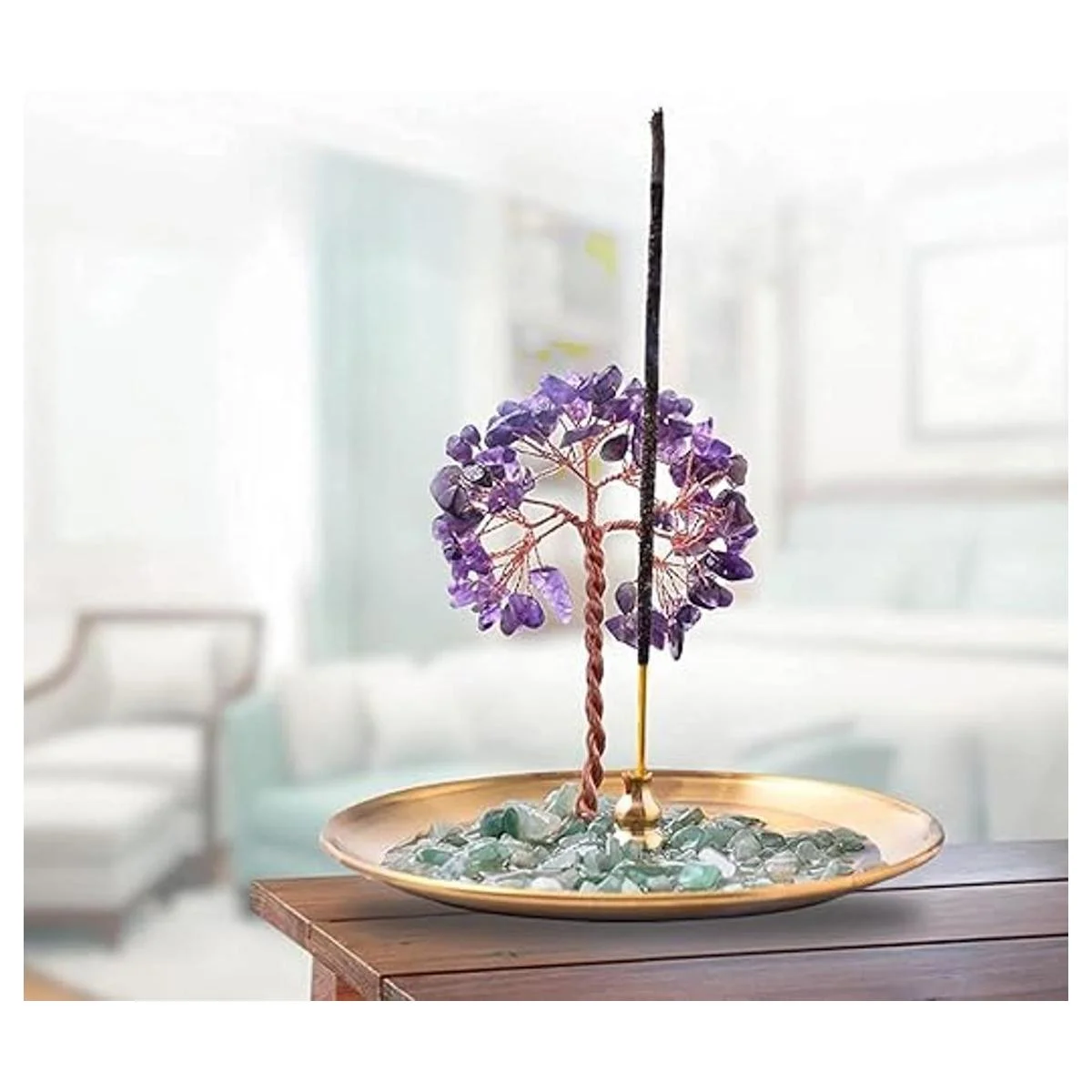 Soporte para incienso para palos, piedra de cristal curativa, quemador de incienso para árbol de dinero, atrapascenizas para yoga, meditación y decoración del hogar morado