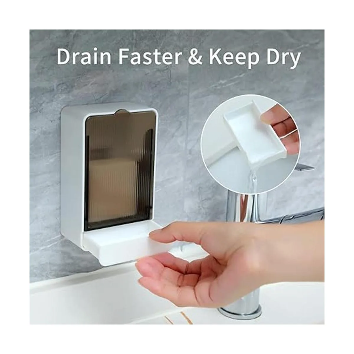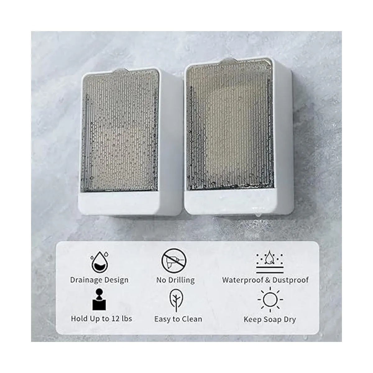 Soporte para jabón para ducha, 2 unidades, jabonera autodrenante con tapa, bandeja de caja de jabón montada en la pared para baño, bañera y fregadero, recipiente de jabón blanco impermeable, adhesivo incluye blanco