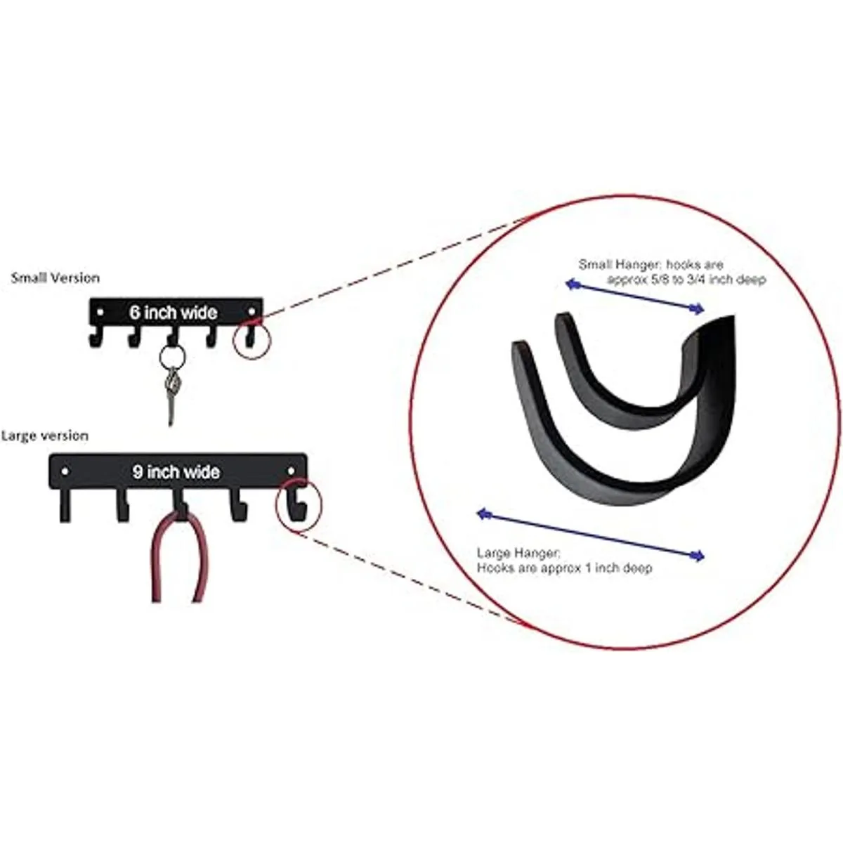 Tamaño del llavero: 6 pulgadas de ancho x 5.6 pulgadas de alto con 5 ganchos redondeados para colgar llaves, máscaras, cordones o similares