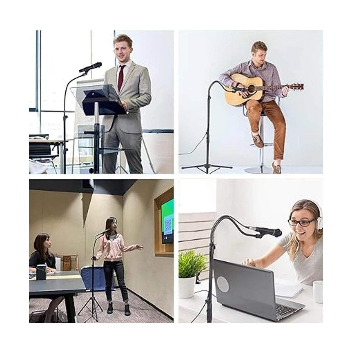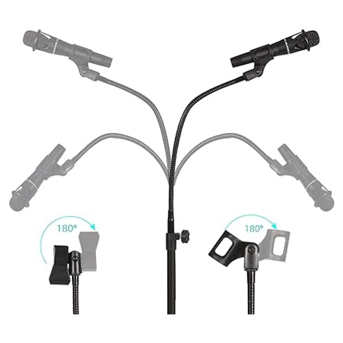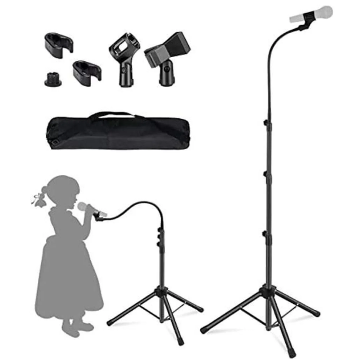 Soporte para micrófono, soporte para micrófono, soporte para micrófono Kangziliang Mike, soporte de cuello de cisne para micrófono, trípode de altura ajustable de 3 a 6 pies con clips de micrófono y adaptador de 38 pulgadas a 58 pulgadas para cantar, la mayoría de micrófonos