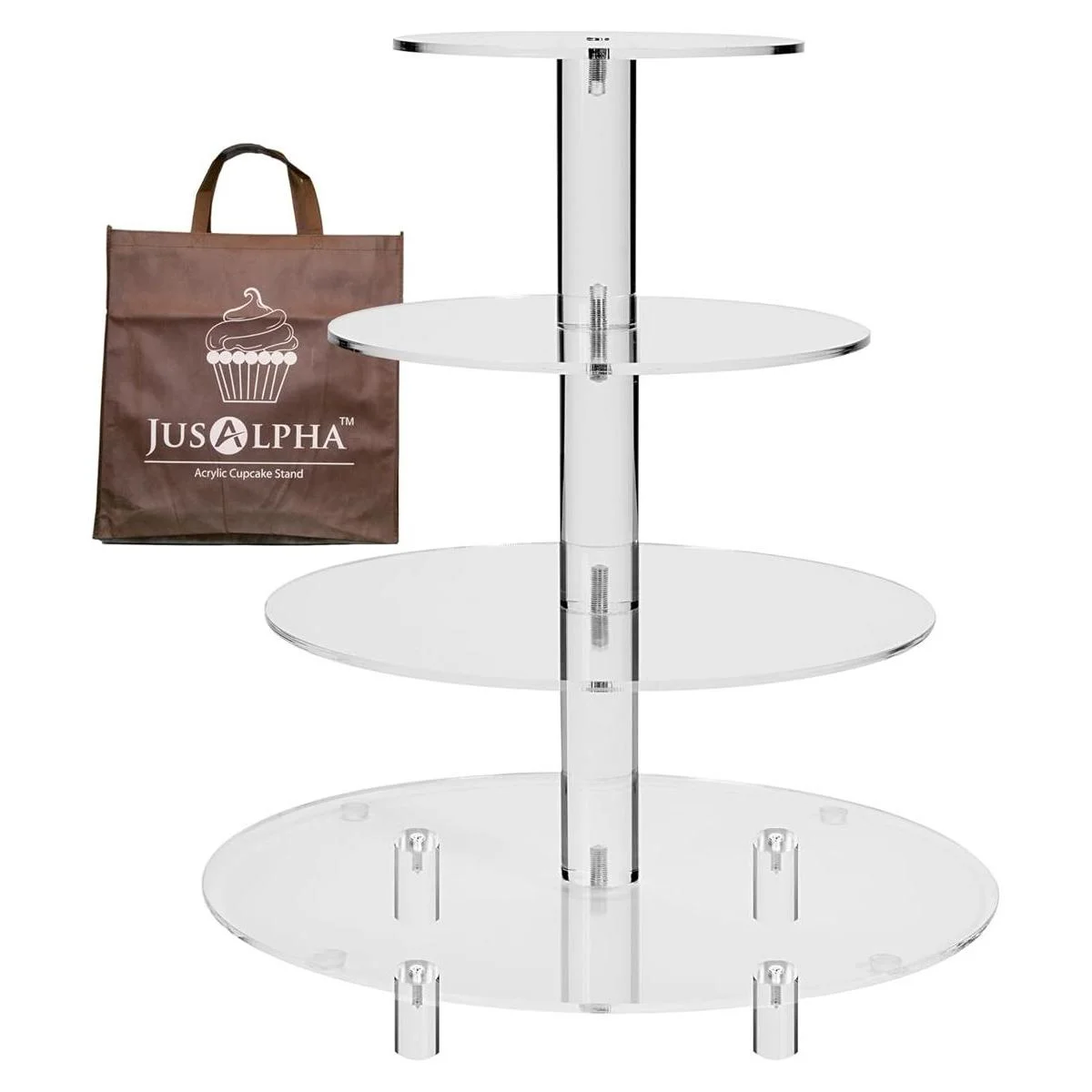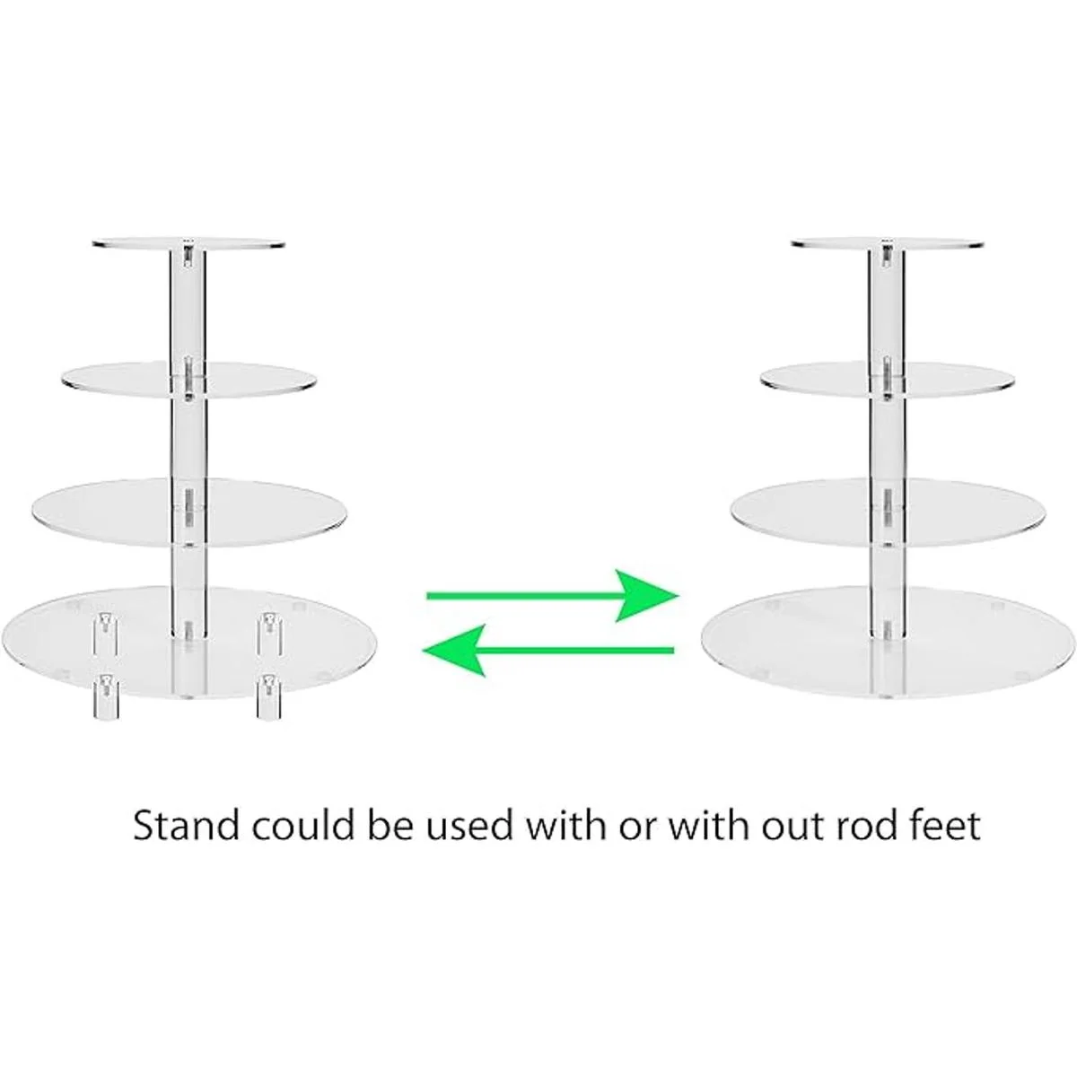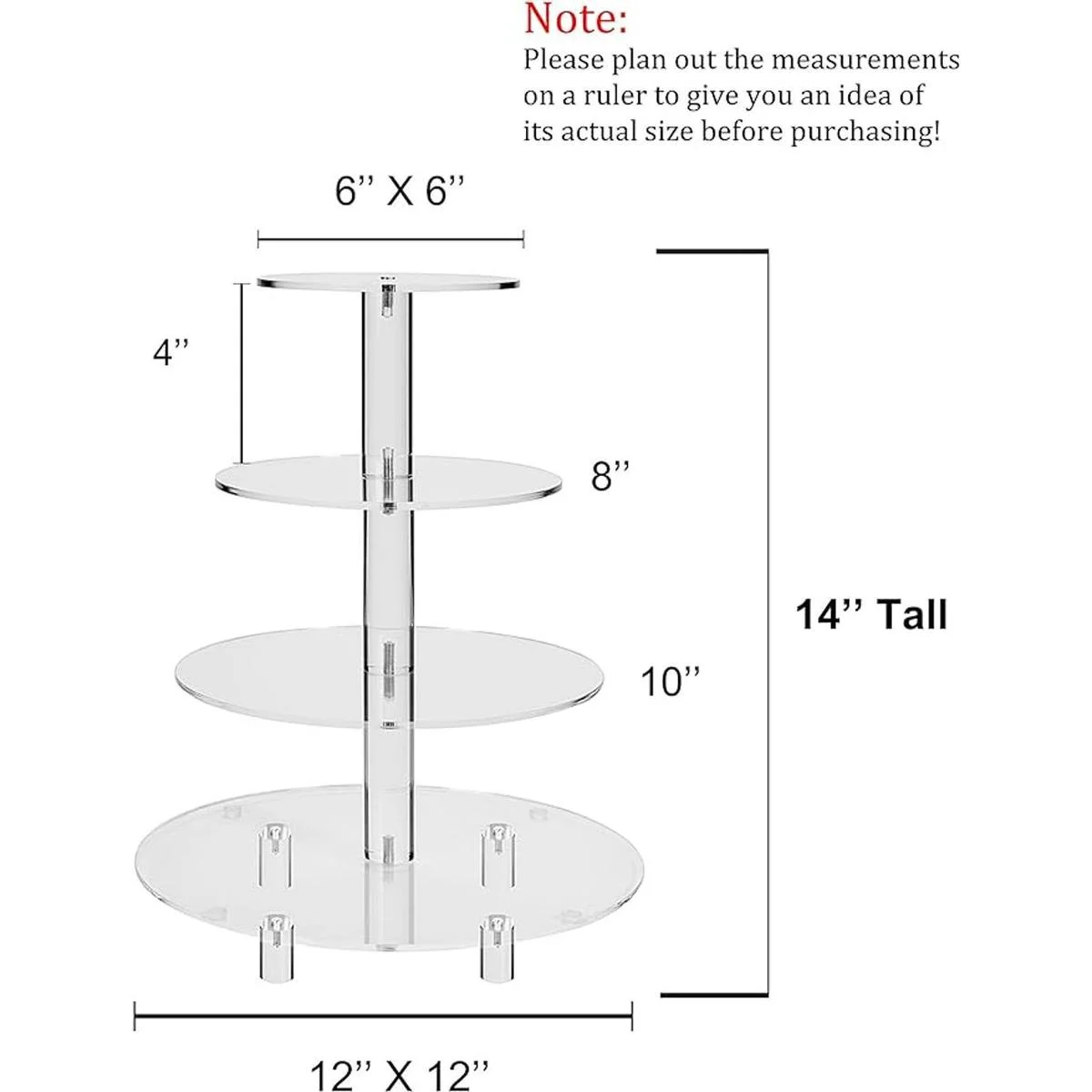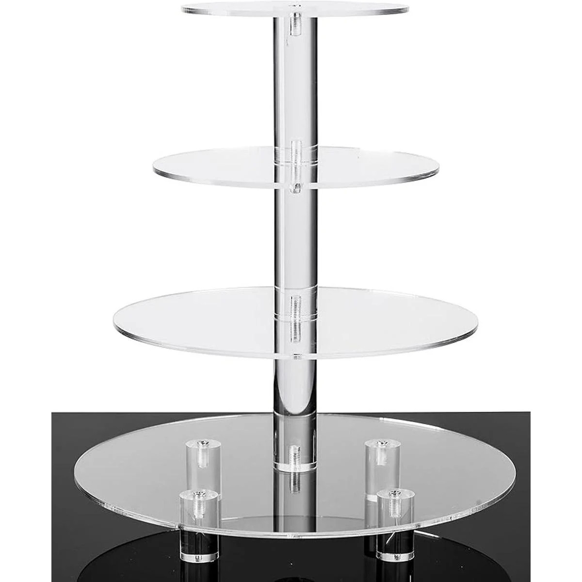 Soporte para panqués de 4 niveles redondo, para bodas, de acrílico, torre de panqués, mostrador de panqués 4 niveles, Transparente