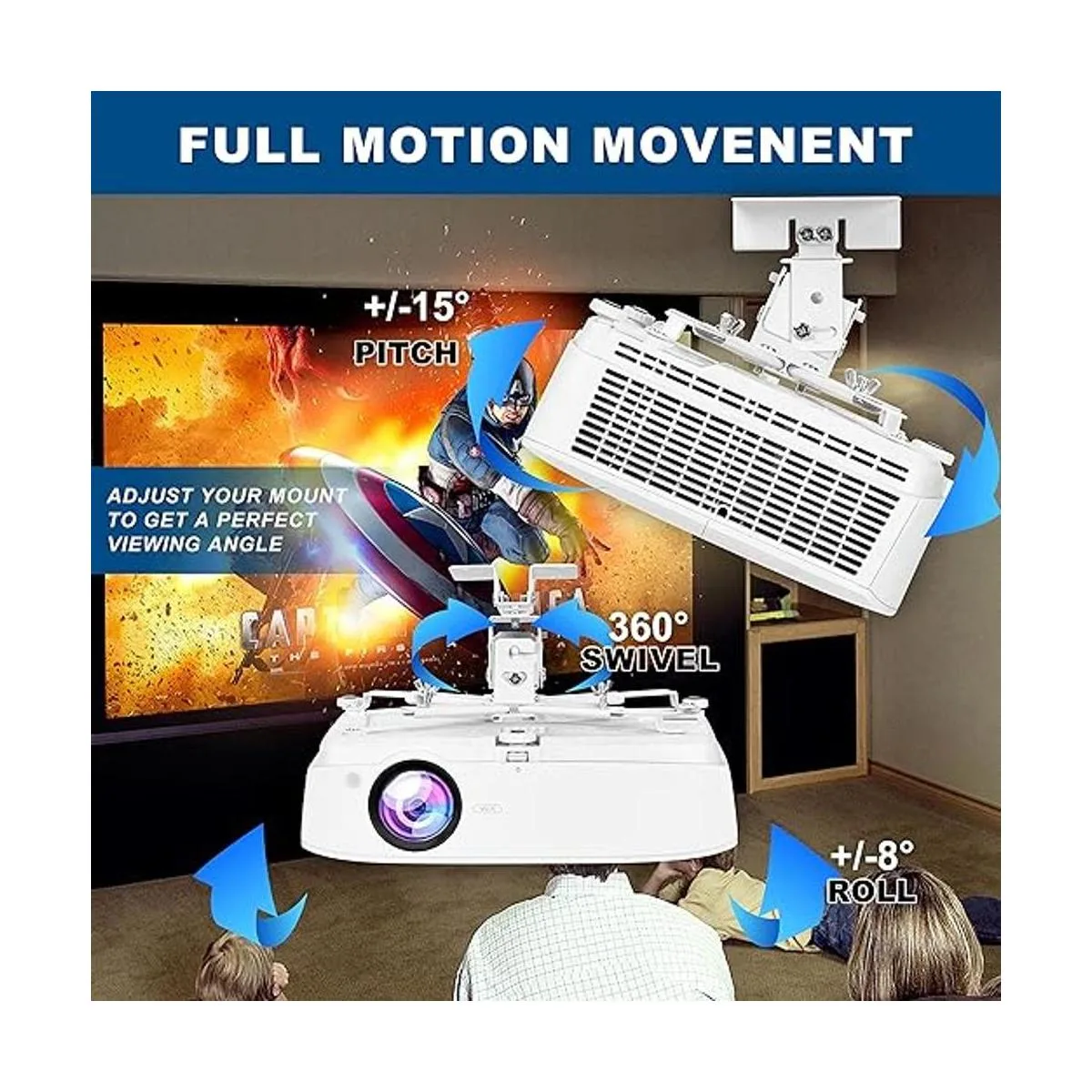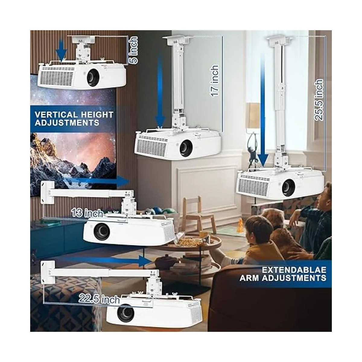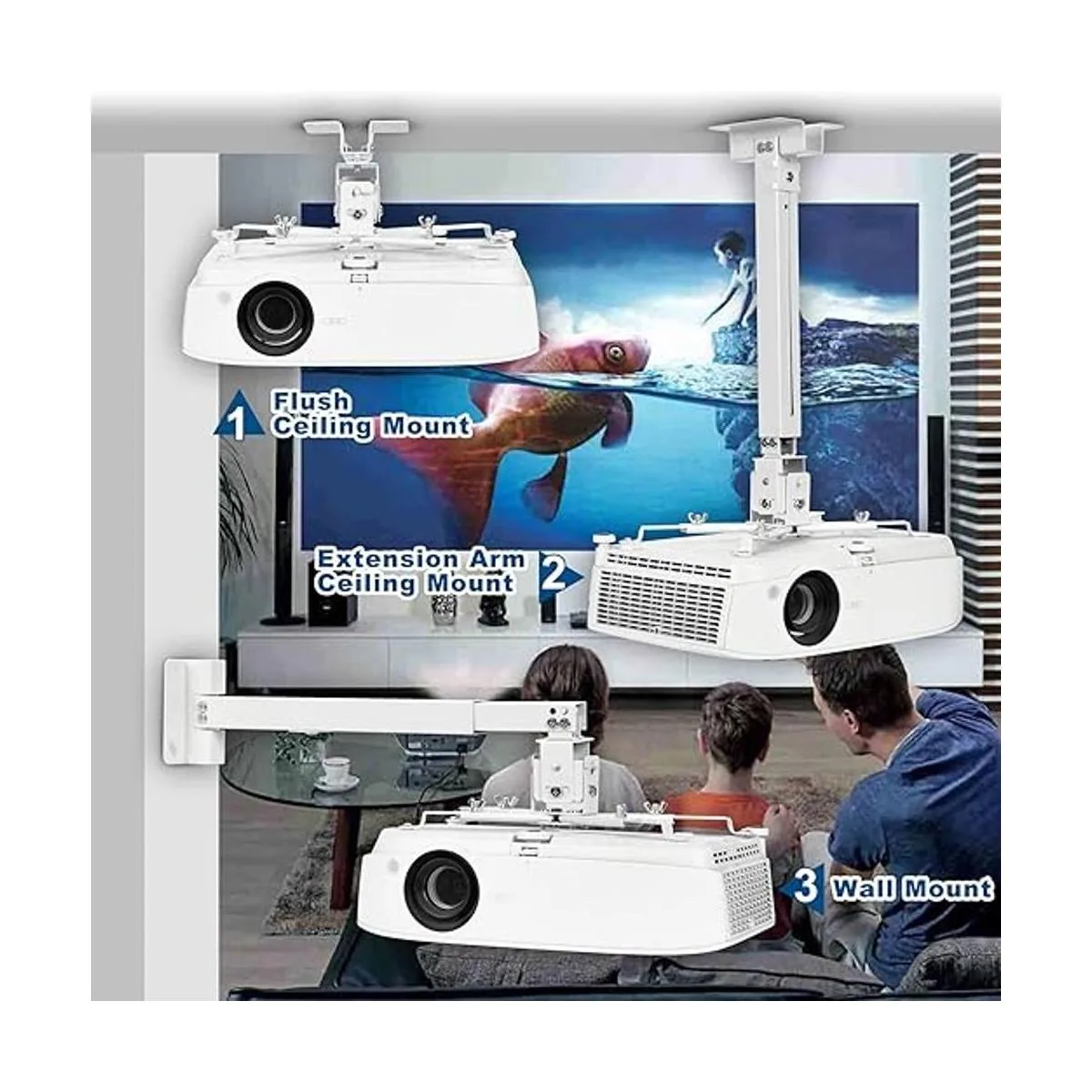 Grandes soportes para proyector: el soporte de techo para proyector ahorra espacio y ofrece posiciones de visualización perfectas. El acabado con recubrimiento en polvo blanco combina bien con la mayoría de entornos domésticos y de oficina, compatible con Epson/Emerson/BenQ/Fangor/Vankyo/Acer/Artlii/Optoma y la mayoría de proyectores.