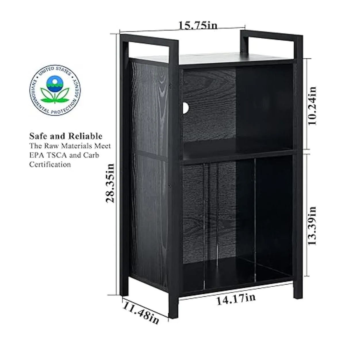 Soporte para tocadiscos industriales: esta mesa negra cuenta con una textura única de madera negra en cada panel y un marco de metal resistente de estilo industrial, que la hace hermosa y funcional. La estructura de este armario de tocadiscos hace que sea muy resistente y puede soportar hasta 70 libras.