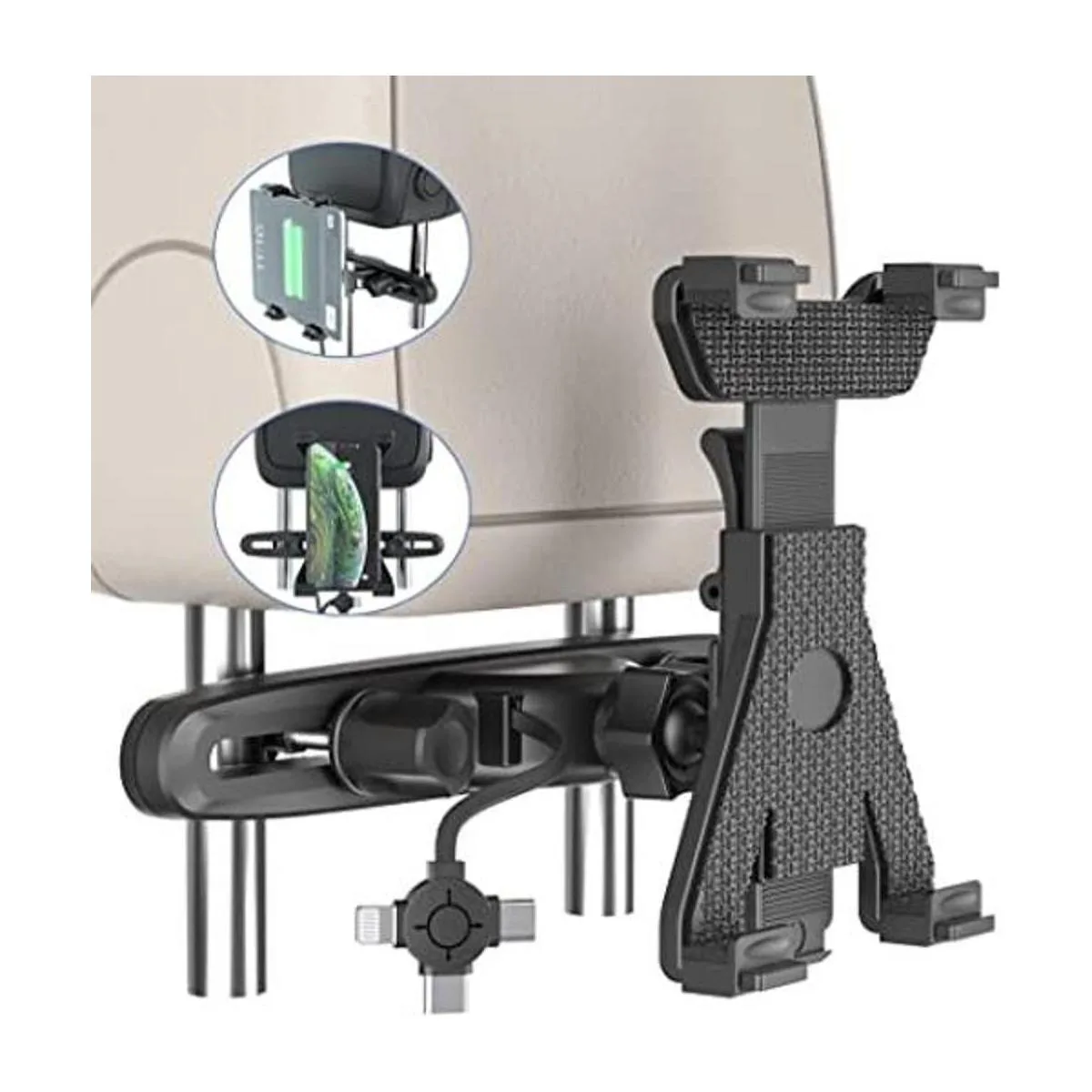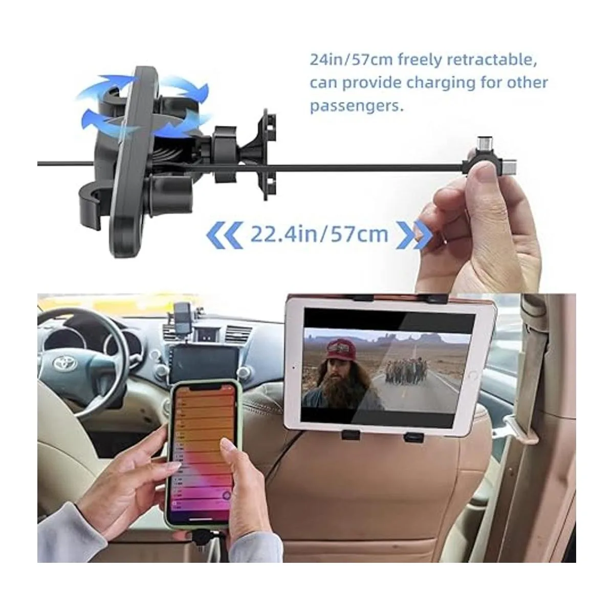 Soporte para tablet para coche, soporte para reposacabezas de coche, soporte para reposacabezas de coche, cable de carga ajustable 3 en 1, interfaz tipo C, micro USB para iPad Air, iPad, Mini, Samsung Huawei y todas las tabletas de 7 a 10 pulgadas