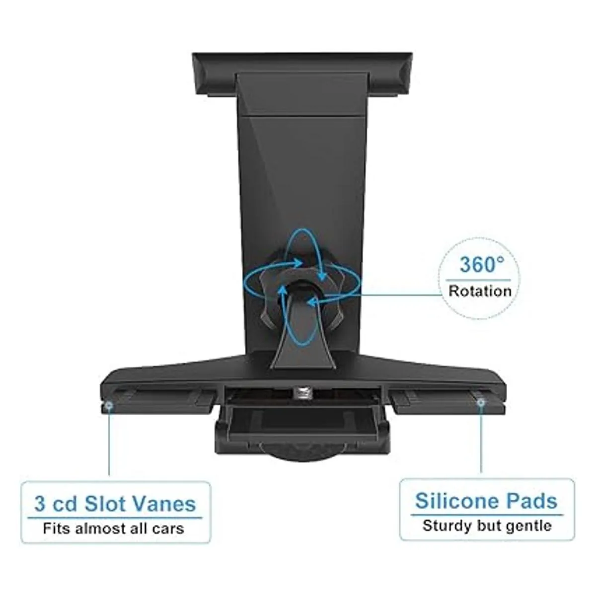 Soporte para tableta con ranura para CD para tabletas de 7 a 12,9 pulgadas, soporte para tablet de coche con rotación completa para iPad Pro 12,9 11 10,5 9,7, iPad Air Mini 5 4 3 2, Samsung Galaxy y más tabletas