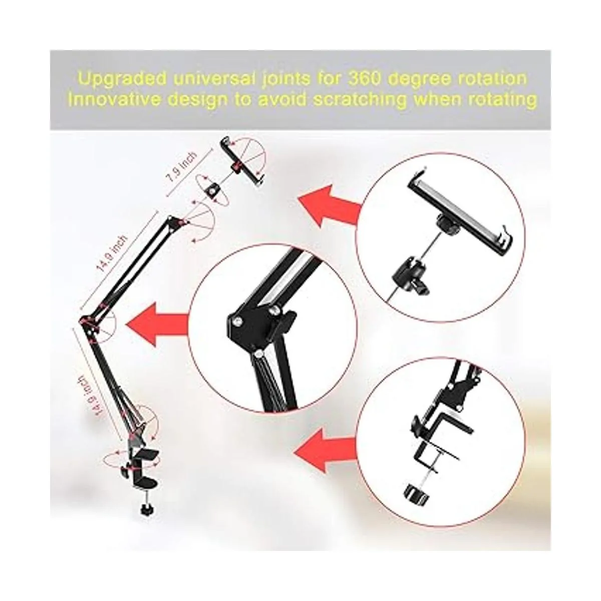 Soporte para tableta para cama, soporte giratorio de 360 grados con brazo de aluminio para iPad, iPhone XS, interruptor NSwitch, Amazon Kindle Fire u otros dispositivos de 4 a 11 pulgadas
