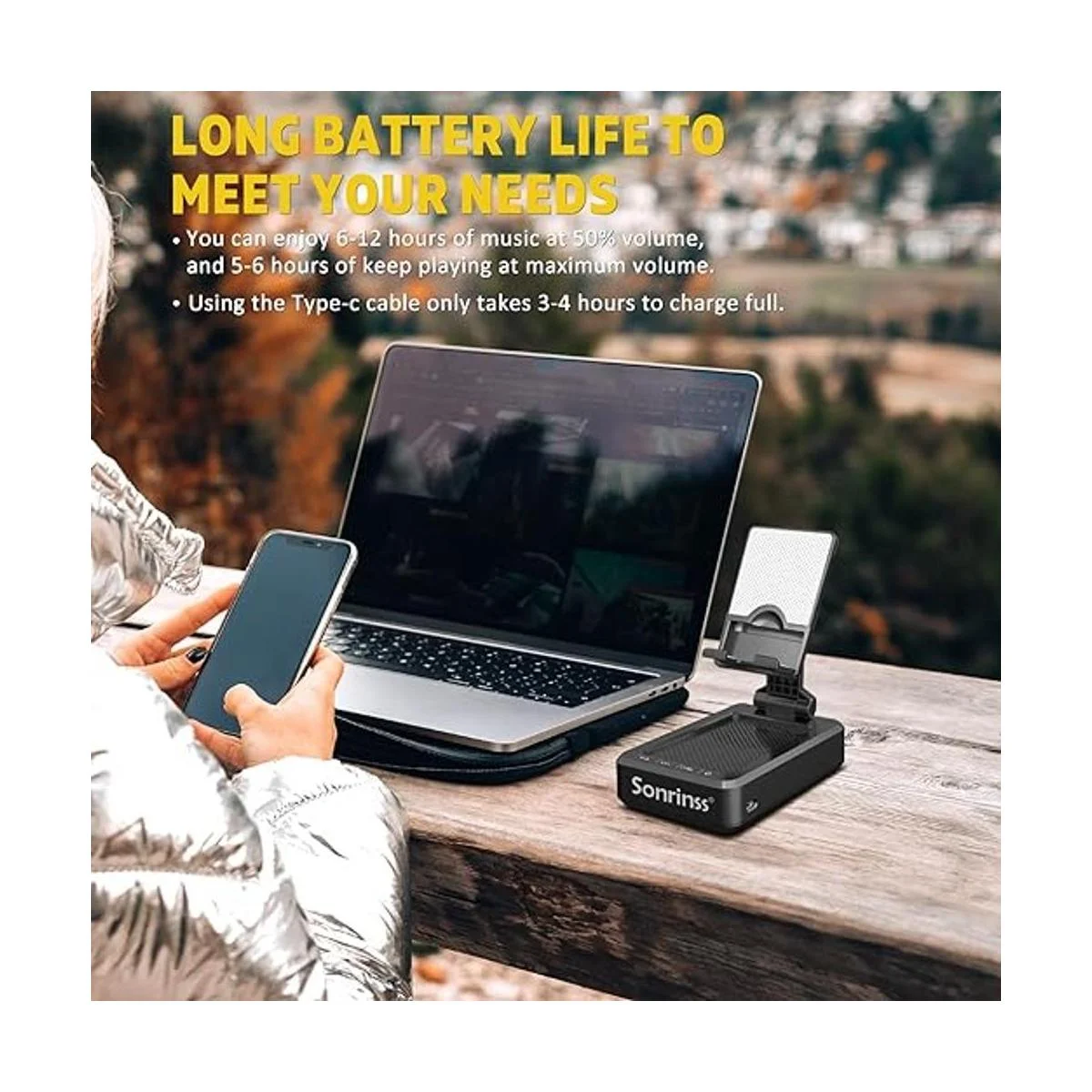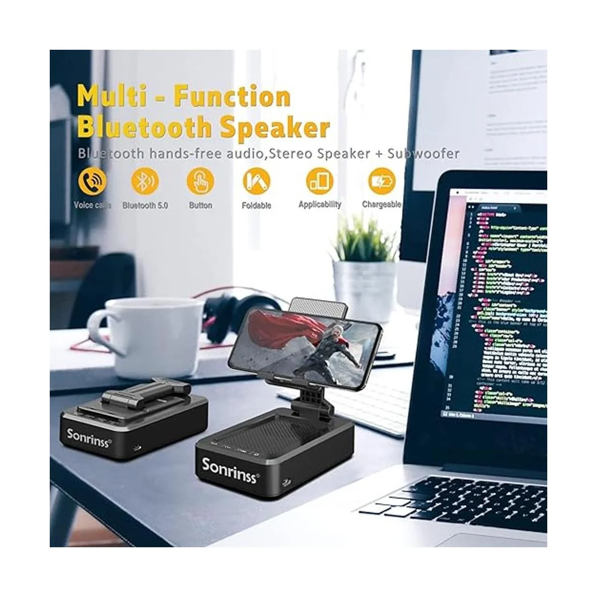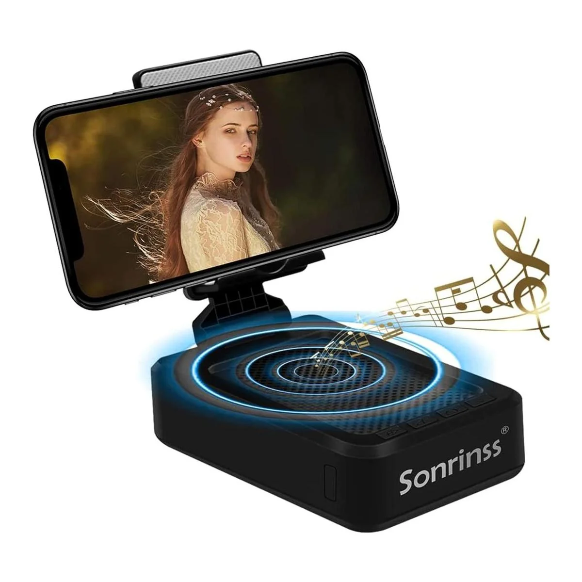 Altavoz Bluetooth 2 en 1 con soporte para teléfono: la base para teléfono para escritorio te proporciona un altavoz Bluetooth portátil. El altavoz Bluetooth inalámbrico ofrece un sonido impresionante con graves mejorados, medios apretados y agudos cristalinos sin distorsión a ningún volumen.