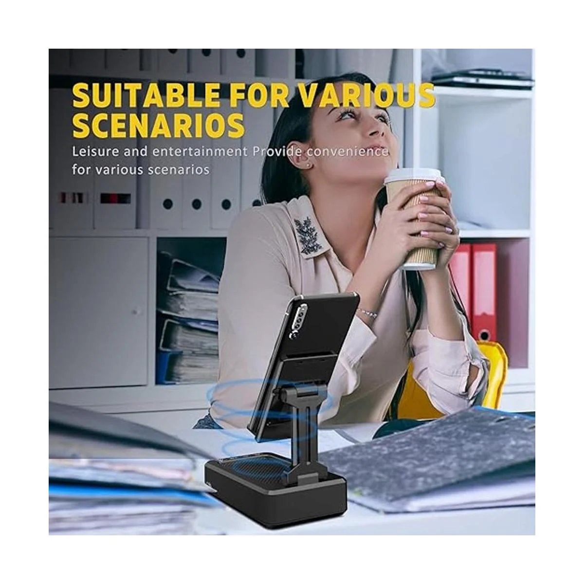 Soporte para teléfono celular con altavoz Bluetooth inalámbrico, altavoces ajustables de sonido envolvente HD para teléfono celular, soporte antideslizante para escritorio, compatible con cualquier teléfono inteligente, adecuado para interiores, exteriores