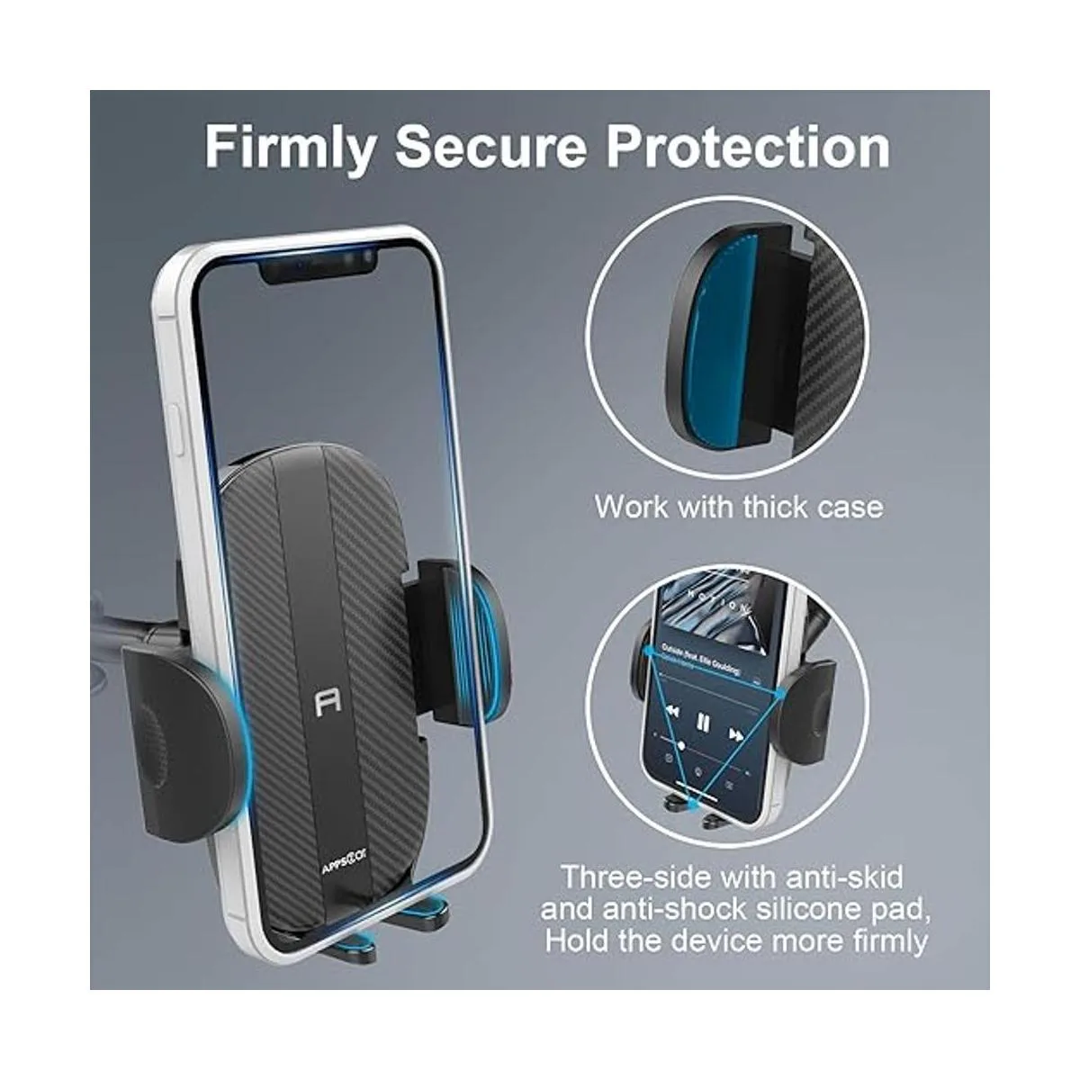 Amplia compatibilidad y 100 seguridad: este soporte de teléfono para coche, talla única, los agarres expandibles pueden extenderse hasta 3.9 pulgadas, que se adapta a una variedad de tamaños de teléfonos celulares, funciona muy bien con dispositivos más grandes incluso con funda gruesa puesta. Agarres recubiertos de goma para mayor estabilidad y protección.