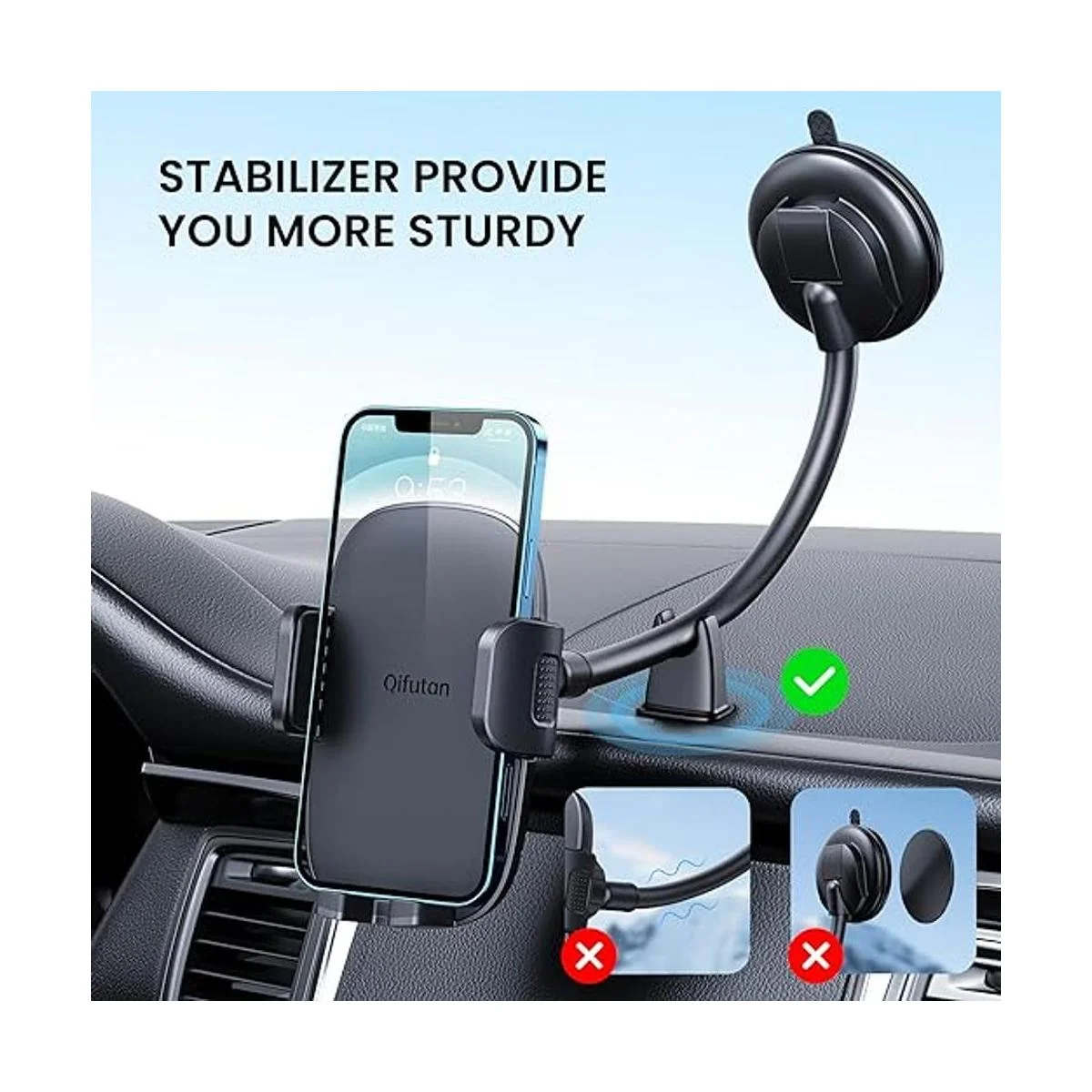 Amplia visión: el soporte de coche para teléfono celular Qifutan cuenta con un cuello de cisne largo de aluminio de 6.3 in que envía tu teléfono mucho más cerca de ti. Se puede montar en el salpicadero o parabrisas firmemente. Lo que es más importante, se puede doblar en todas las direcciones para evitar obstruir la vista