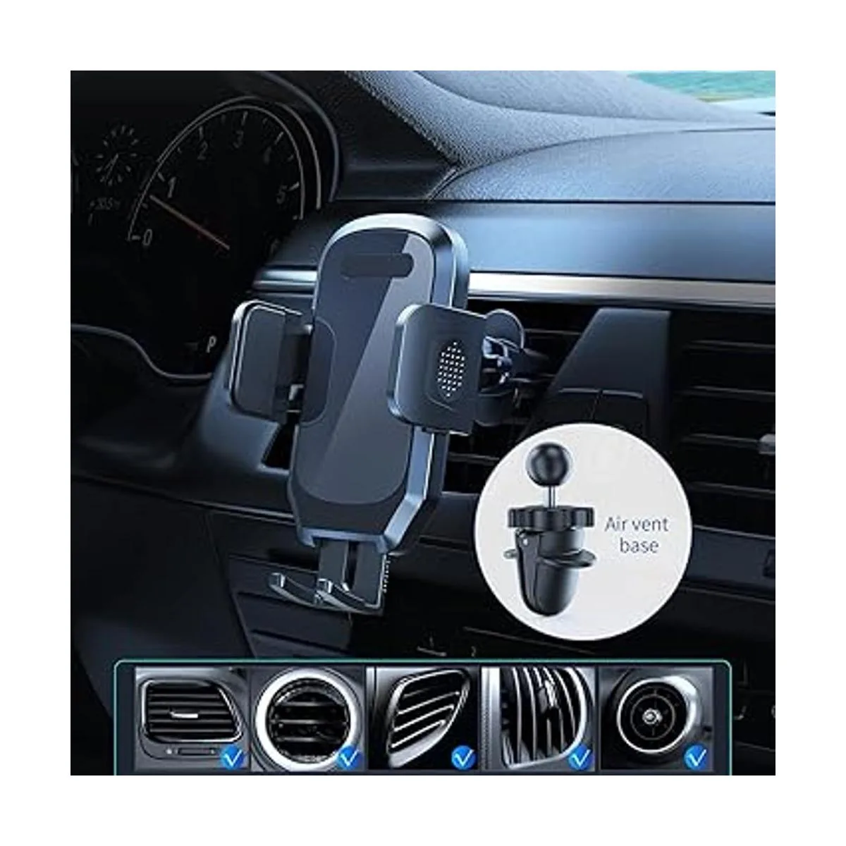 Soporte universal 3 en 1: el soporte para teléfono celular del coche se puede montar en el salpicadero, ventana, ventilación de aire del coche y escritorio de oficina fácilmente. Y un botón de liberación rápida te permite operar el teléfono con una sola mano. El paquete incluye 1 soporte universal para teléfono con ventosa para coche, 1 clip de ventilación mejorado, 1 estabilizador antivibración, satisface tus necesidades en diferentes ocasiones.