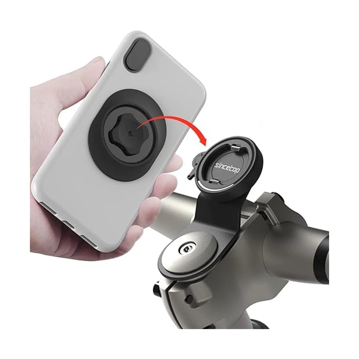 Bloqueo y liberación rápidos: rápido de colocar y desmontar tu teléfono en cuestión de segundos con una mano, asegúrate de que no te perderás llamadas o mensajes durante el ciclismo. Simplemente empuja el teléfono en el soporte del teléfono de la bicicleta para fijar tu teléfono la hebilla de aleación se bloqueará automáticamente. Gira 90 para desmontar el teléfono la hebilla de aleación se liberará automáticamente.