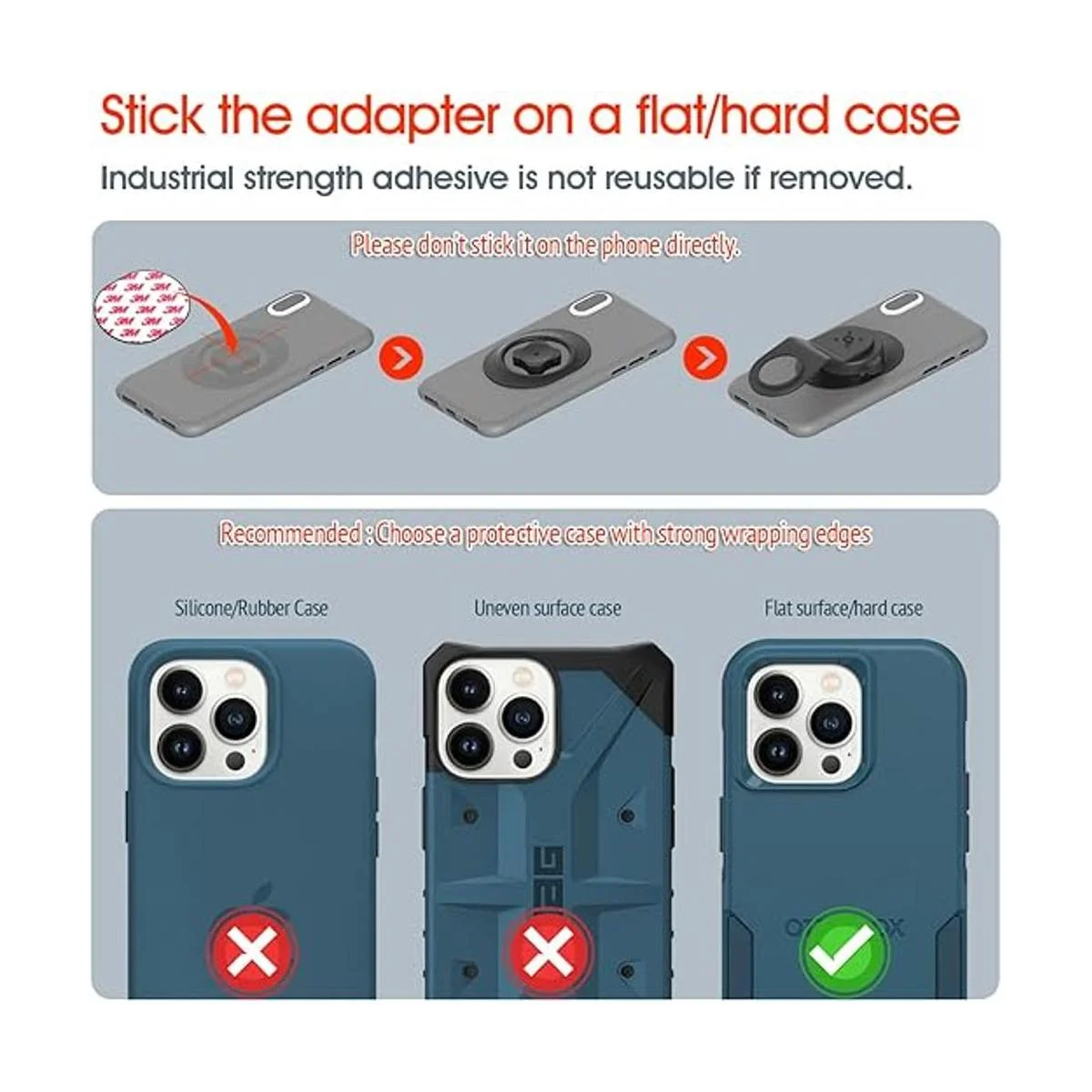 Adaptador universal: este soporte para iPhone MTB viene con 1 adaptador universal, con una gran área de pegado largo 2.598 x 2.008 in 2.6 x 2 pulgadas. Diseño de superficie curvada 3D, pegarse a la parte posterior de la funda del teléfono todavía puede obtener una buena sensación al tacto. La cinta adhesiva de doble cara 3M de grado industrial de alta viscosidad se puede pegar firmemente a la mayoría de las fundas de teléfono celular. Nota: la funda de silicona no es adecuada.
