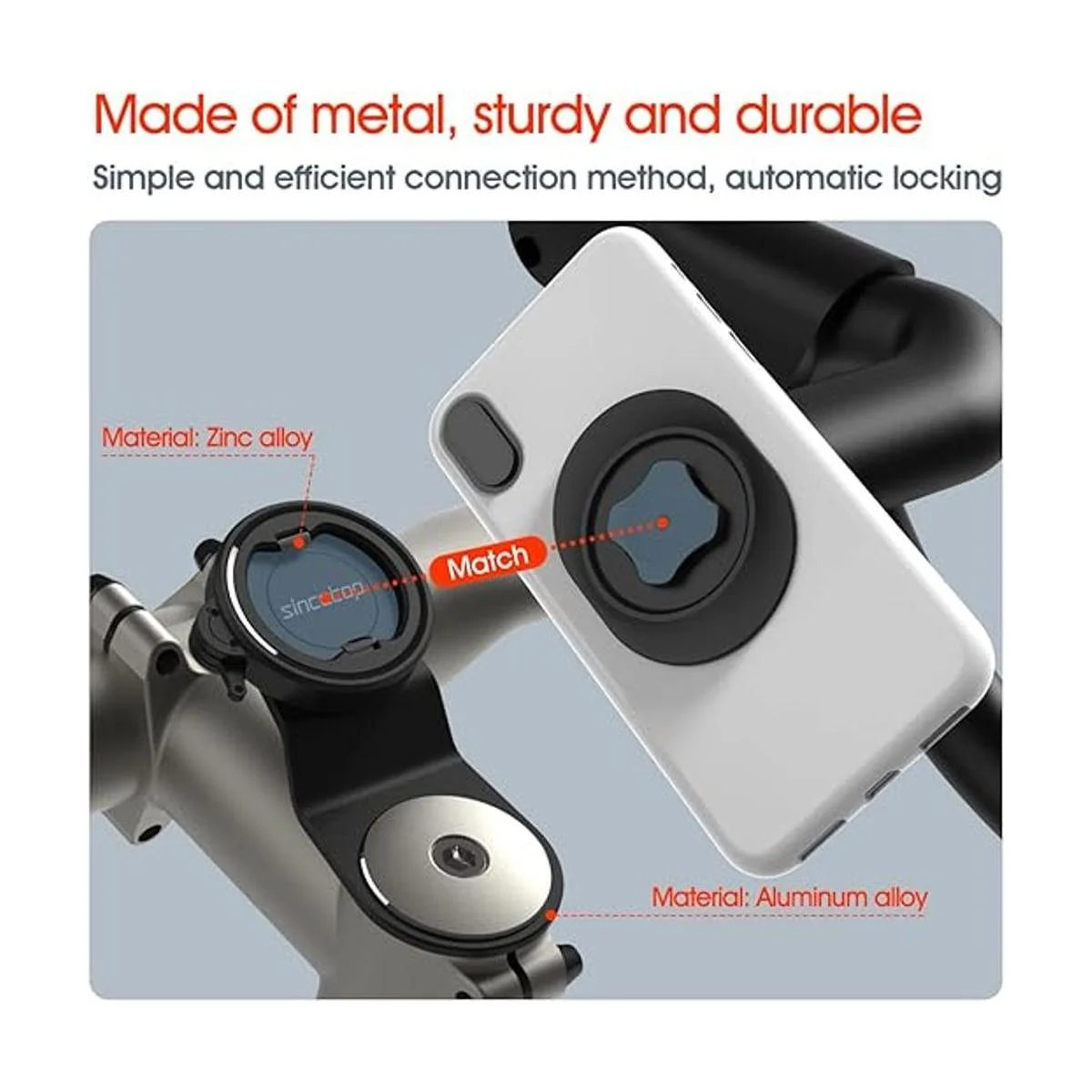 Duradero y seguro: la base del soporte para teléfono de bicicleta está hecha de aleación de aluminio de alta calidad, el grosor de la aleación de aluminio es de 0.118 in, es resistente y duradero. Las hebillas para bloquear el adaptador están hechas de aleación de zinc. Base de aleación de aluminio y hebilla de aleación que proporcionan más seguridad durante el ciclismo de carretera o bicicleta de montaña.