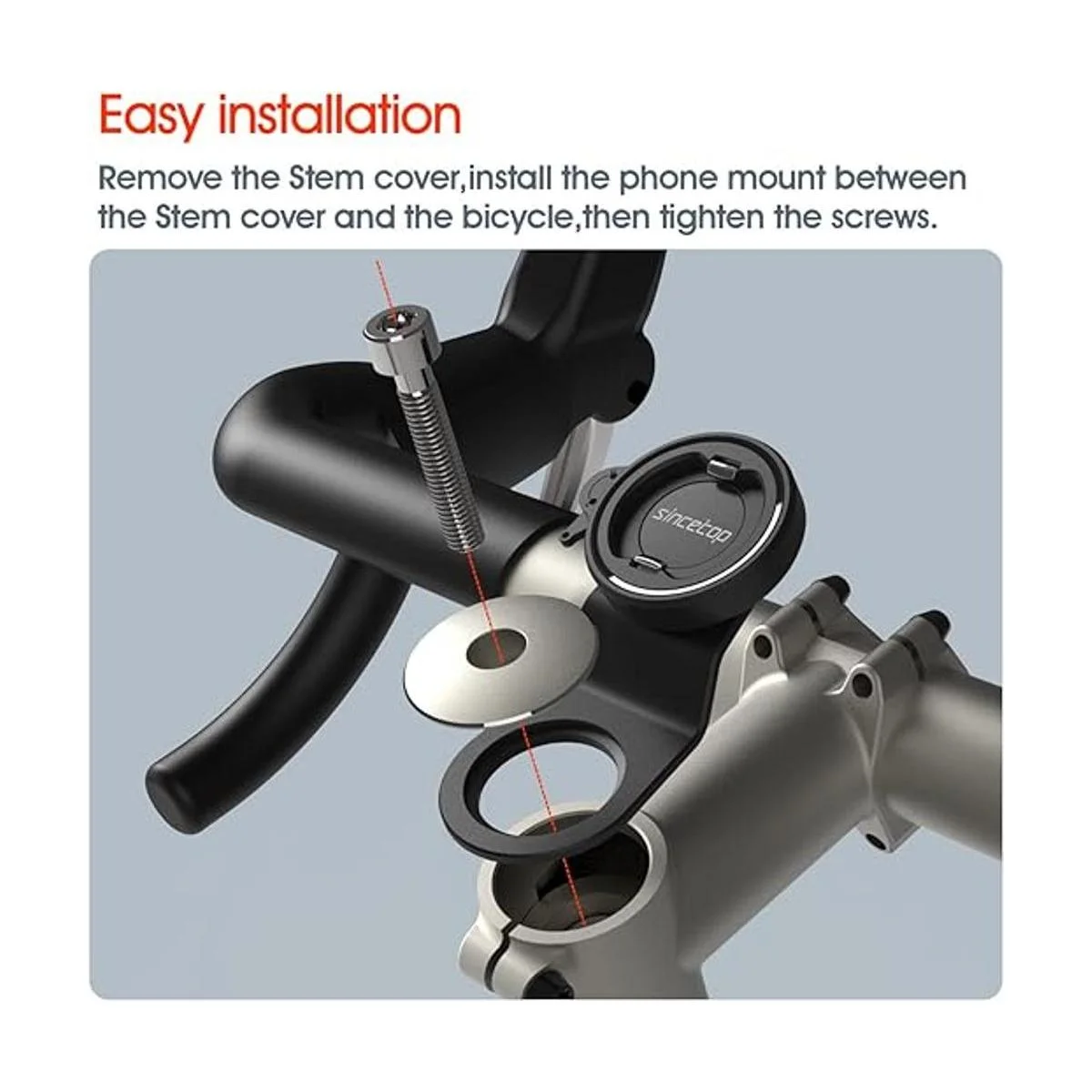 Instalación central: se instala en el centro del vástago de la bicicleta. Cuando montas en bicicleta, este soporte puede mantener tu teléfono móvil delante de ti. Y la instalación es simple, solo tienes que quitar un tornillo. Este soporte es pequeño y no ocupa espacio en el manillar. Todavía puedes instalar cualquier equipo de conducción que desees en el manillar.