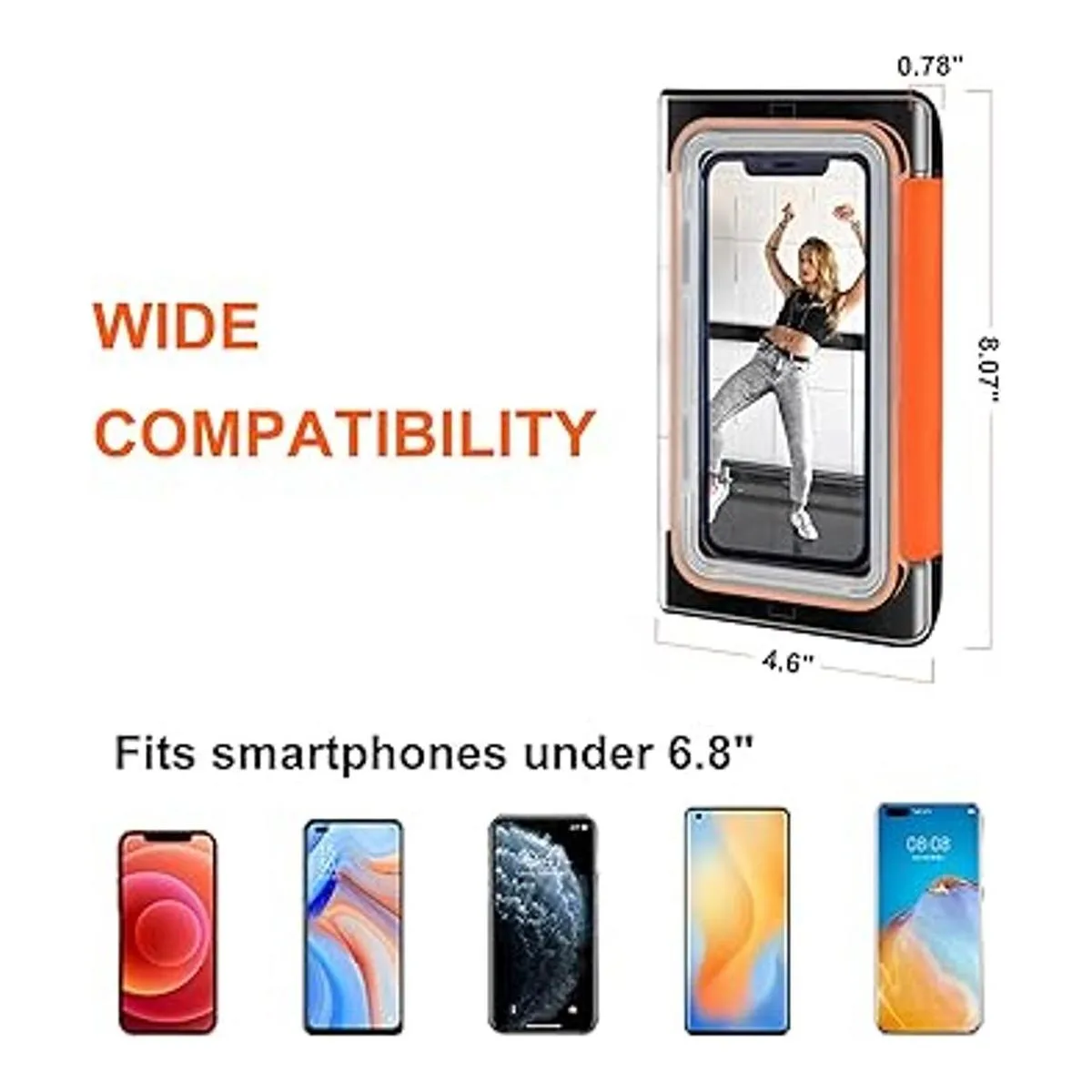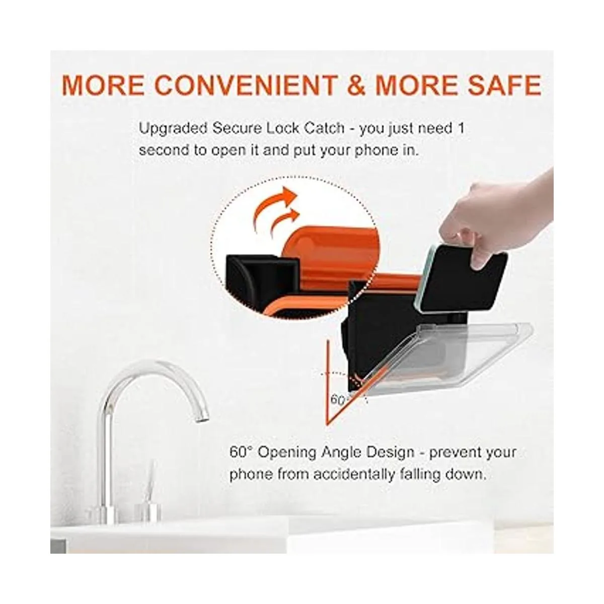 Amplia compatibilidad: el soporte impermeable para teléfono de ducha se adapta a todos los smartphones de menos de 6,8 pulgadas. Nota: Por favor, retira la funda de tu teléfono si este soporte no puede cerrar completamente correctamente.